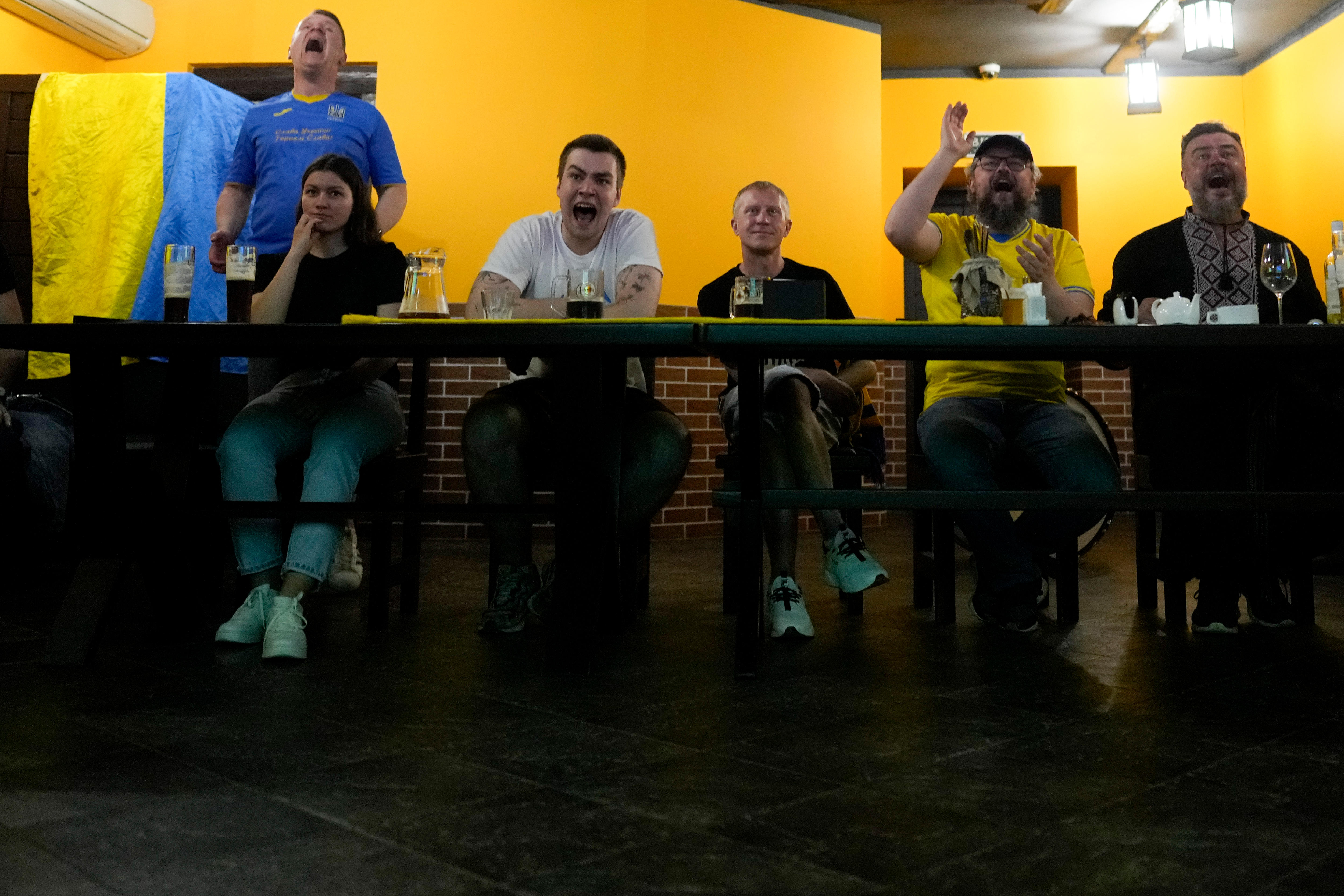 Still, architect Dmytro Leshehenko dug out his bright yellow national team jersey — bought in happier times when Ukraine co-hosted the 2012 European Championships — and trekked with his flip-flop-wearing brother past two of Kyiv's gold-domed cathedrals to a bar where they watched the match with friends, washed down with two huge three-litre jugs of beer, fried bread, smoked meats and other nibbles.