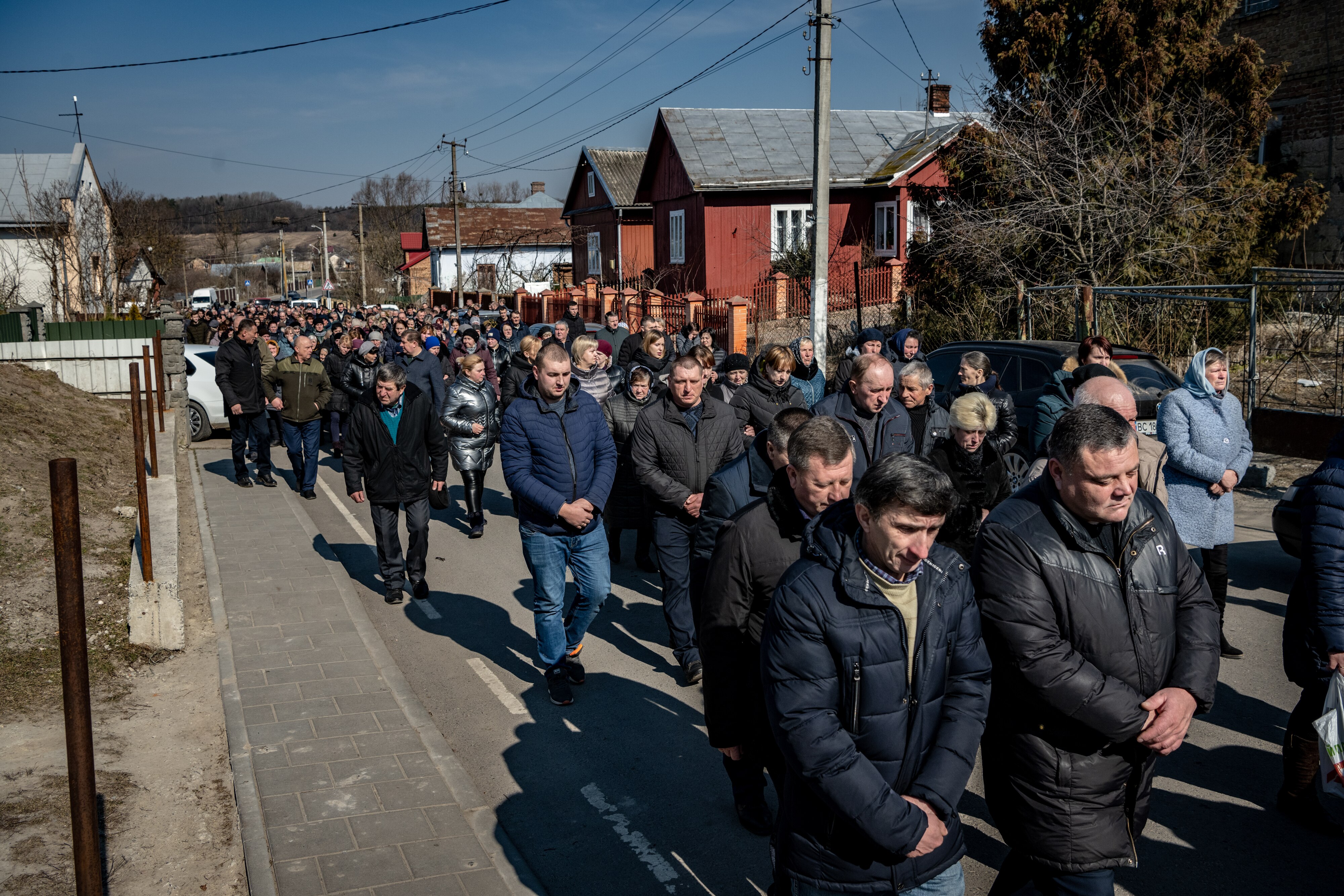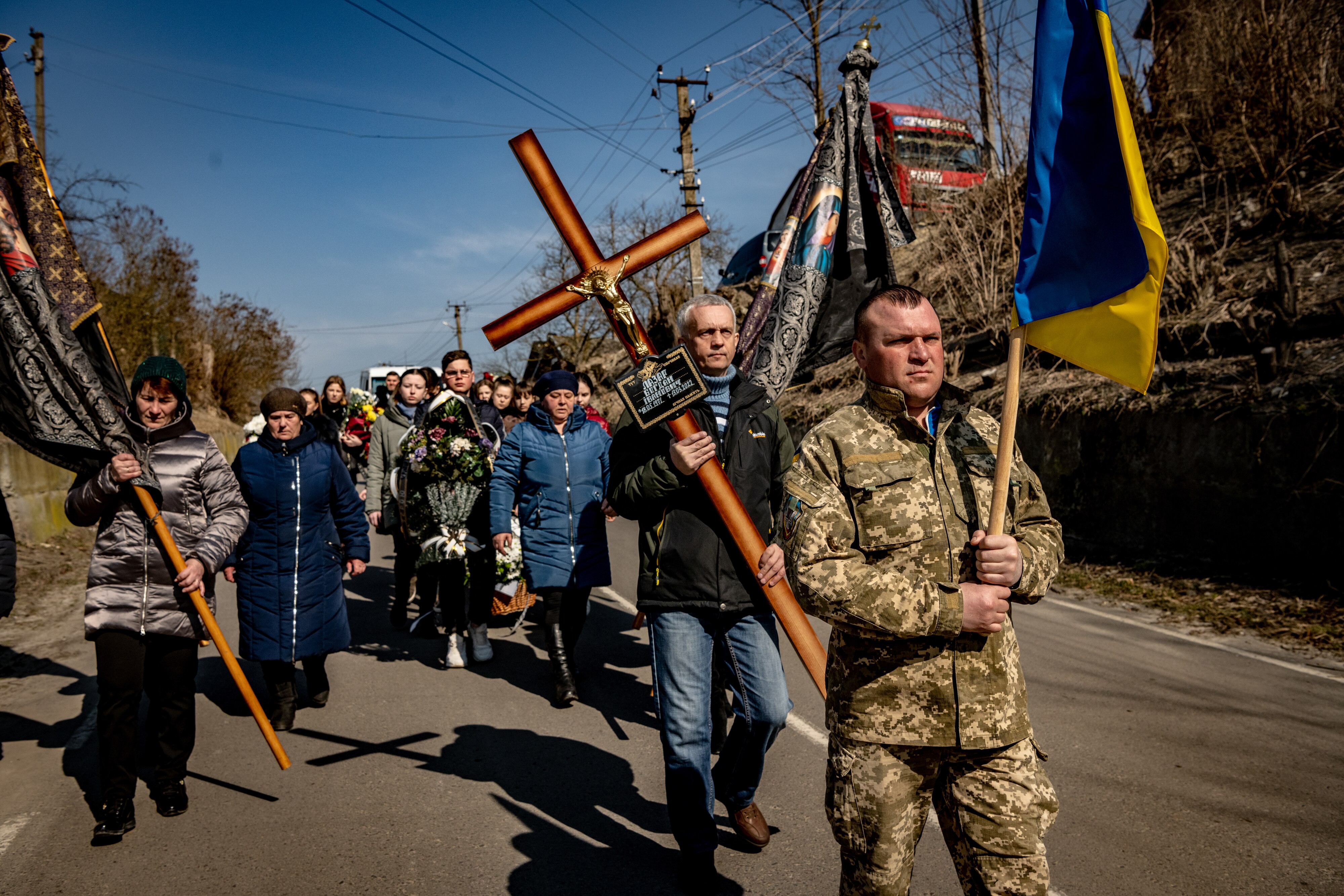 In the western Ukrainian village of Verkhnya Bilka, the first local hero killed in Russia's war is being laid to rest and, as is the custom, the community will join a procession to honour him, to pray for his resurrection and to help his family say goodbye.