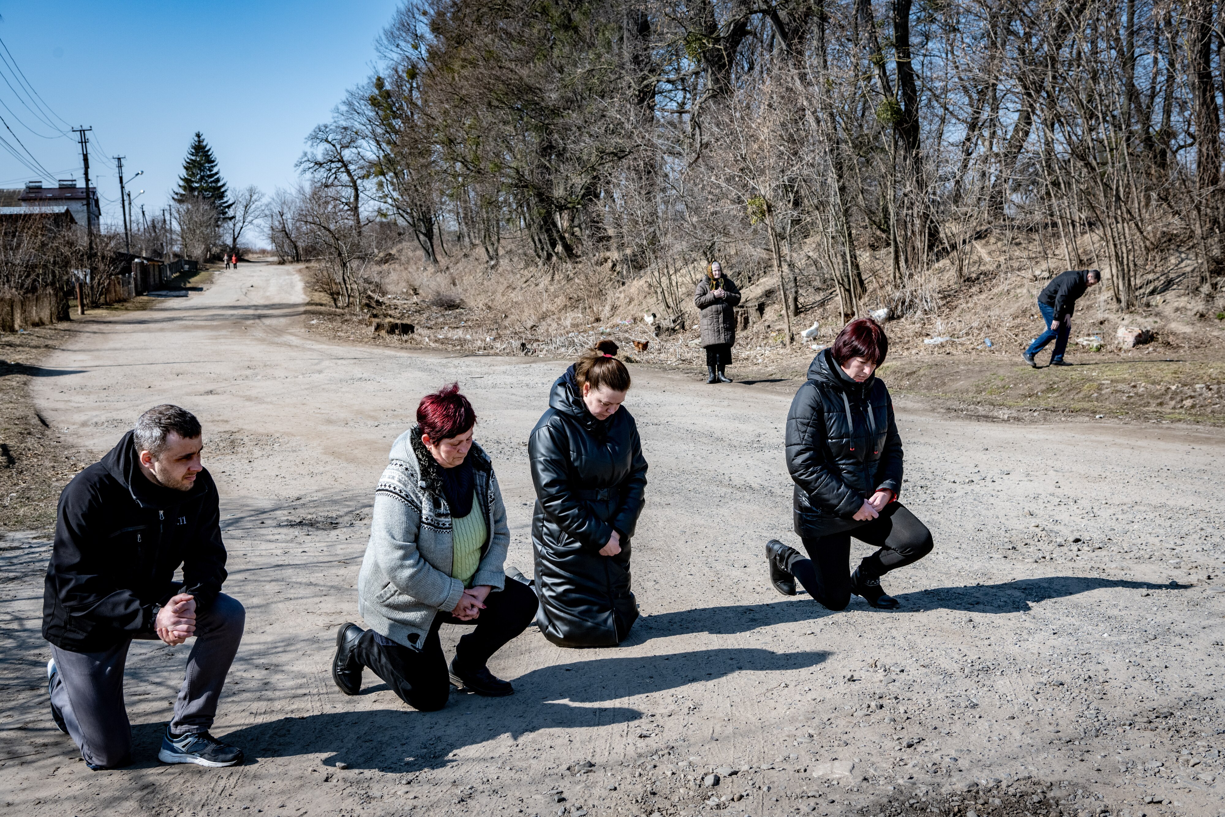 Women who have left Ukraine work to send supplies back in. Volunteers usher displaced people towards shelters. And villagers show up to honour their first fallen hero.