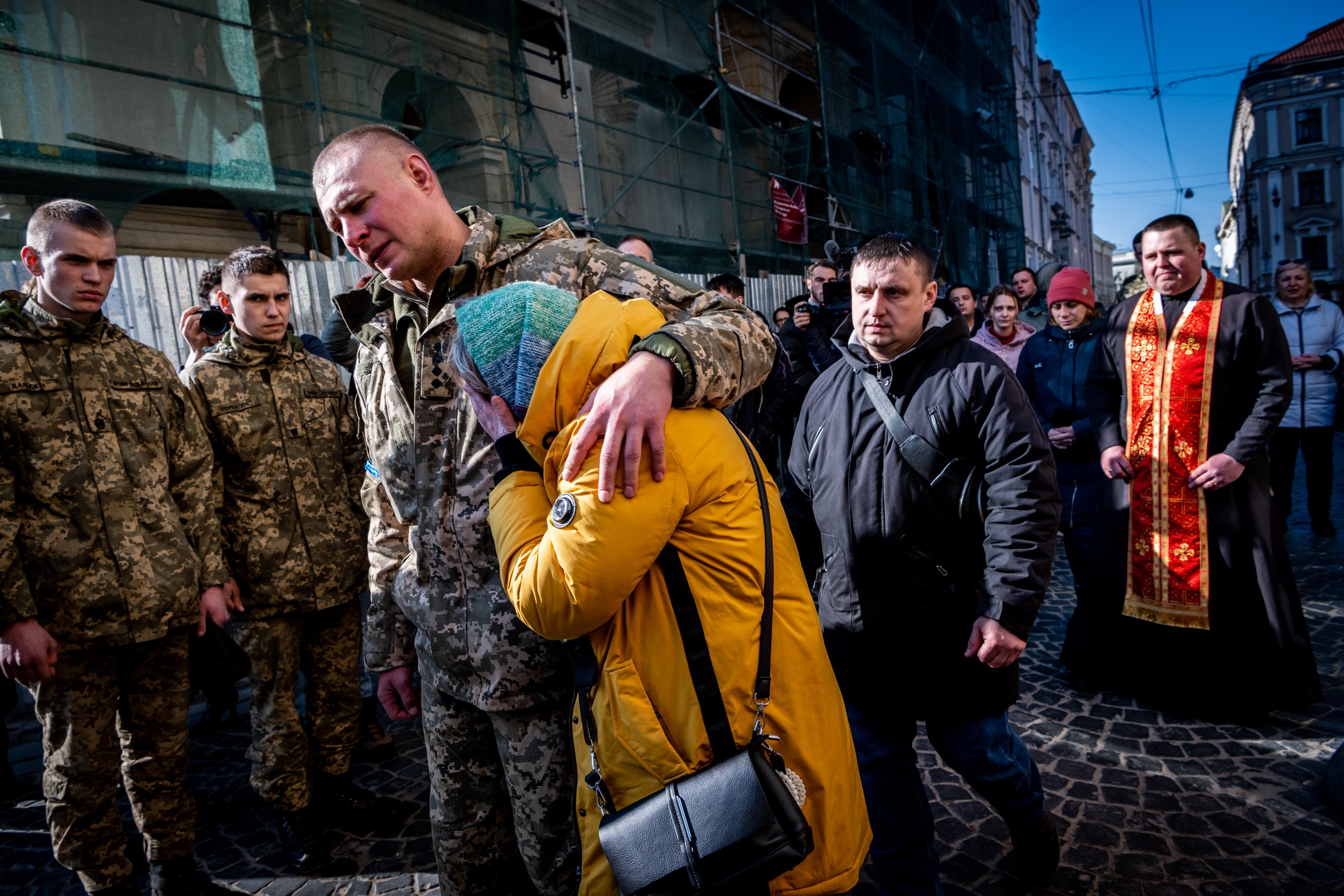 The garrison church in central Lviv has been holding funerals and prayers for fallen soldiers for weeks.