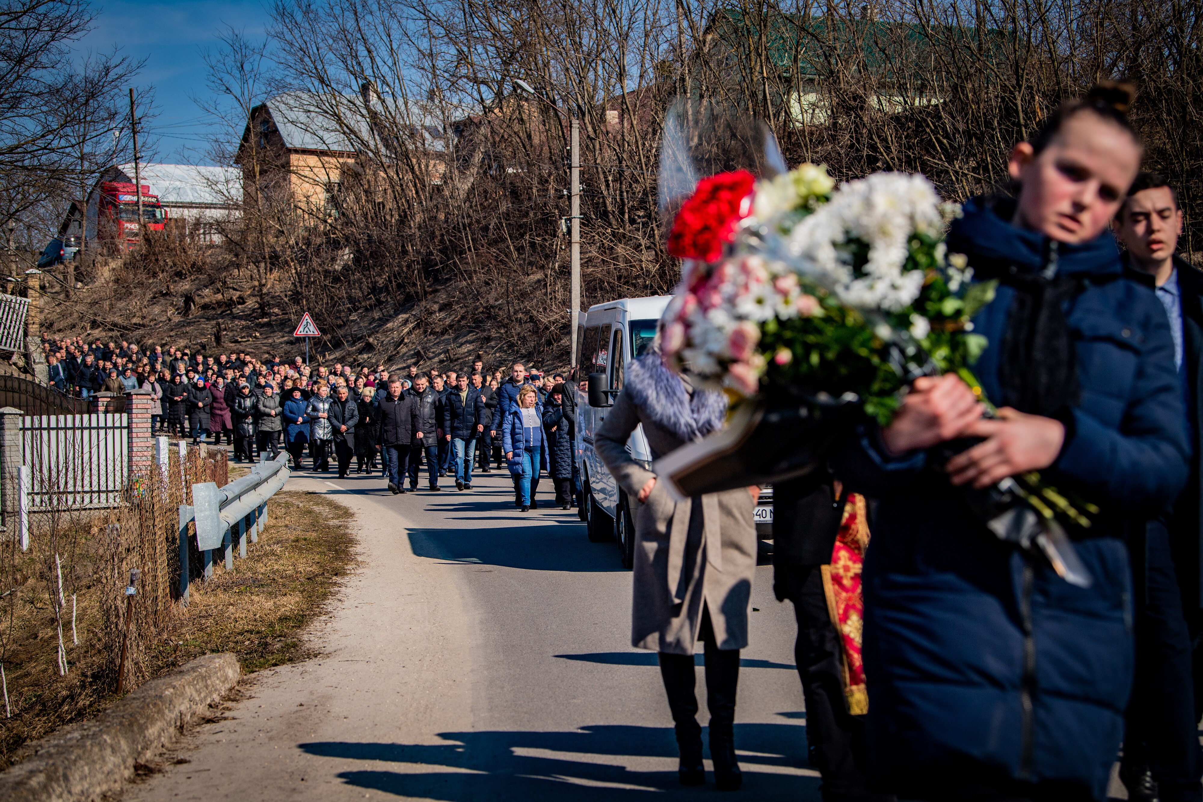 Vasil is walking a few steps behind the grieving family, eyes fixed on them: "Bogdan's family is now my family."