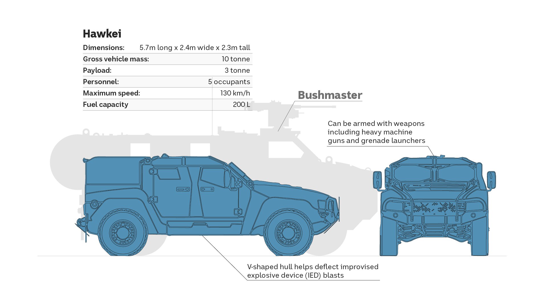 The US equivalent would be the Humvee, but Mr Langford said Hawkeis were designed to have more emphasis on the "survivability of soldiers".