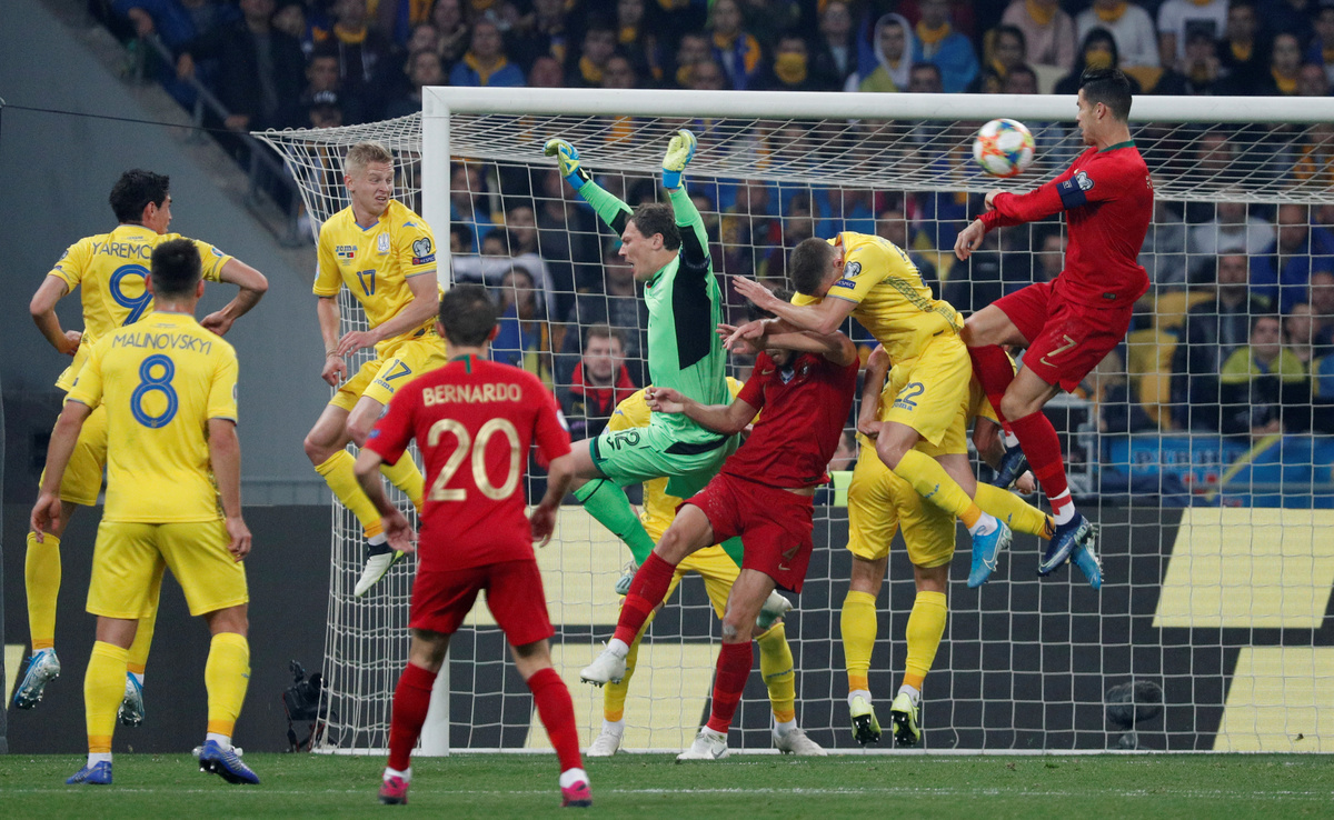 KIEV (Reuters) - Ukraine advanced to the Euro 2020 finals after an impressive first half helped them to a 2-1 home win over Portugal, whose talismanic captain Cristiano Ronaldo scored his 700th career goal in a Group B qualifier on Monday.