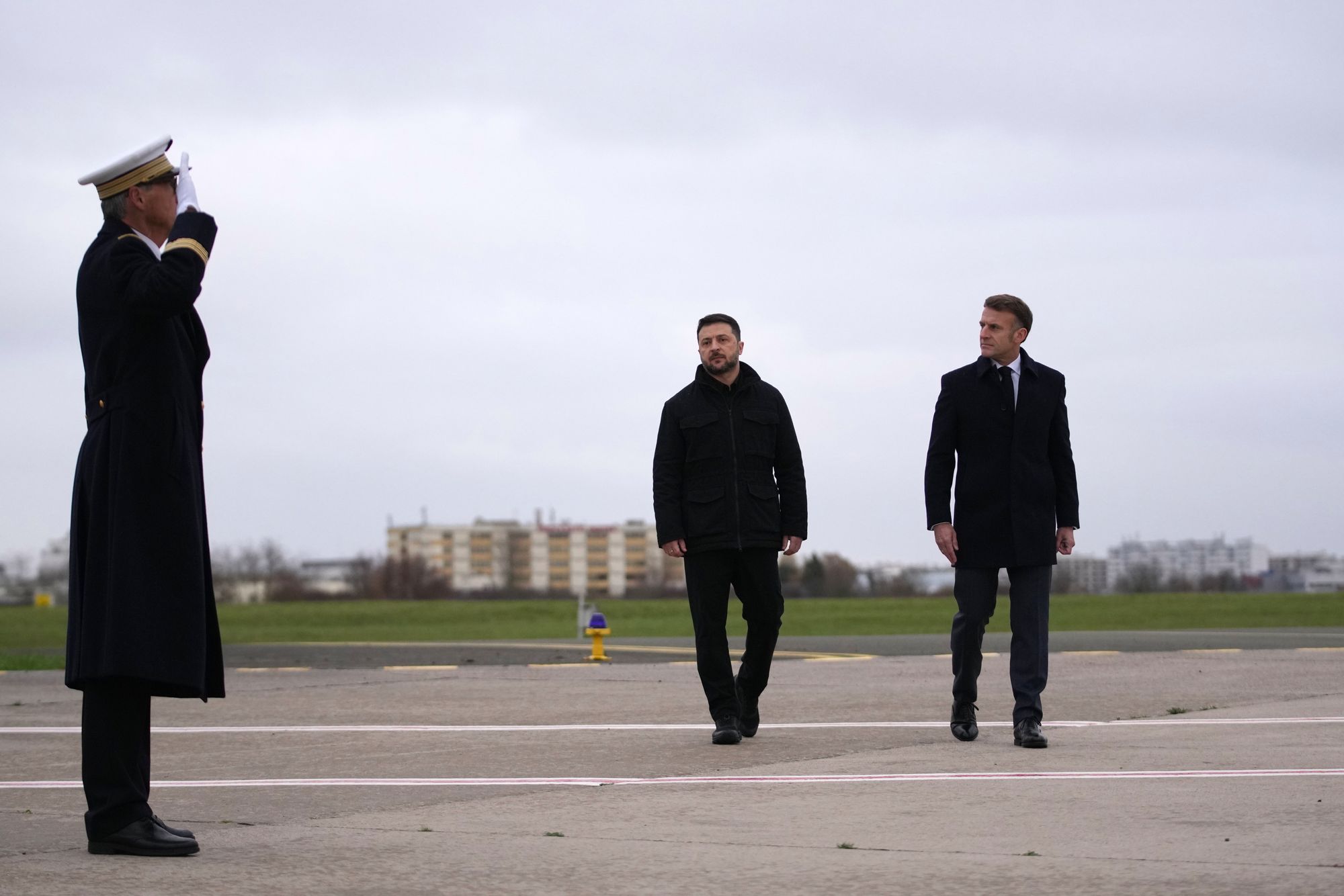 The Ukrainian president touched down in Paris on Monday morning, where he was greeted by his French counterpart to seal deals on the supply of air-defence capabilities, warplanes and missiles.