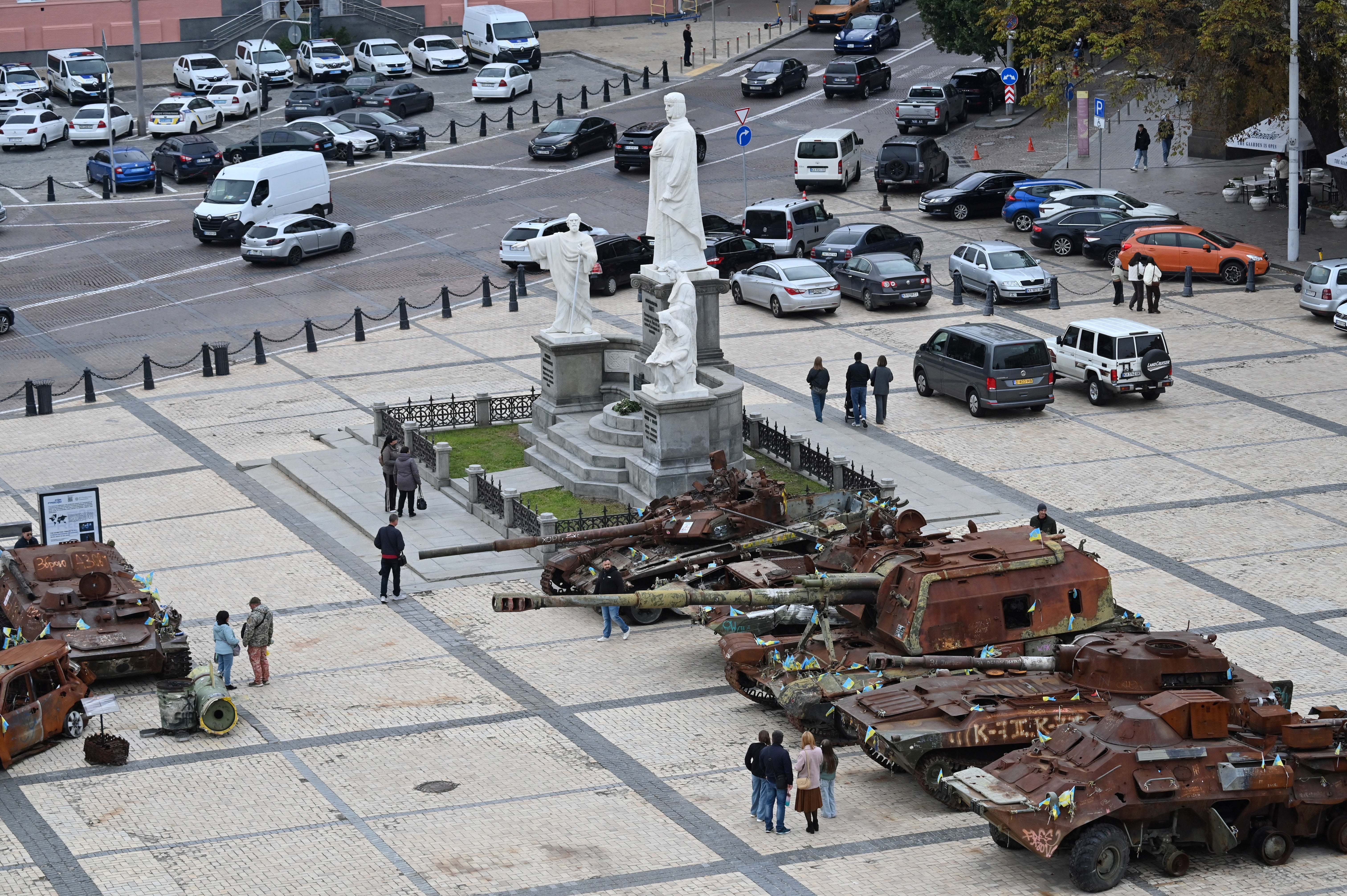 Pictured: Open air exhibition of destroyed Russian military equipment in Kyiv