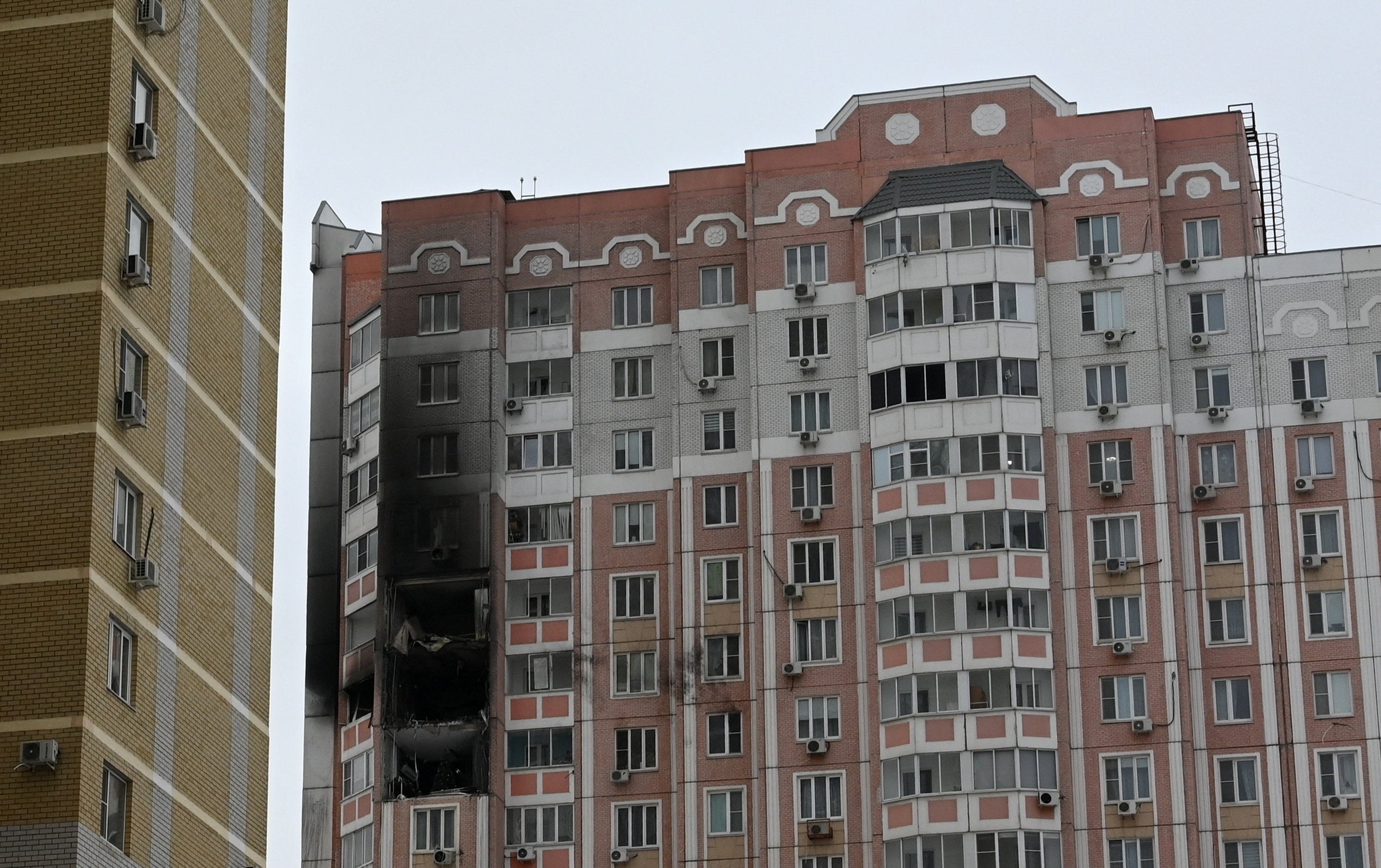 Wednesday 14 January 2026 14:30 , Maira ButtA multi-storey apartment block that local authorities say was damaged by debris from downed Ukrainian drones during an attack on the region, amid the Russia-Ukraine military conflict in Rostov-on-Don, Russia, 14 January.