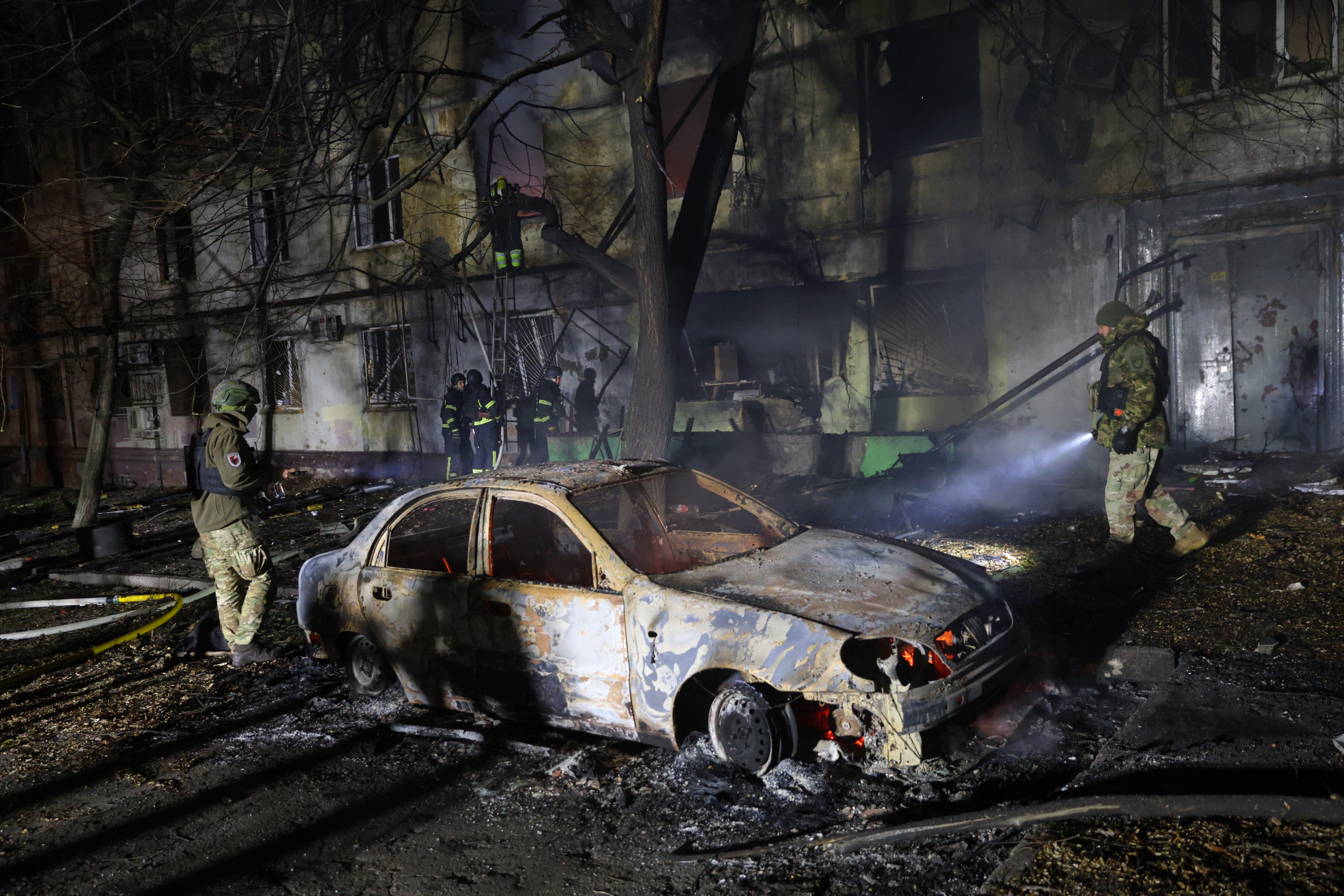 Pictured: Firefighters work at aftermath of Russian attacks in Zaporizhzhia