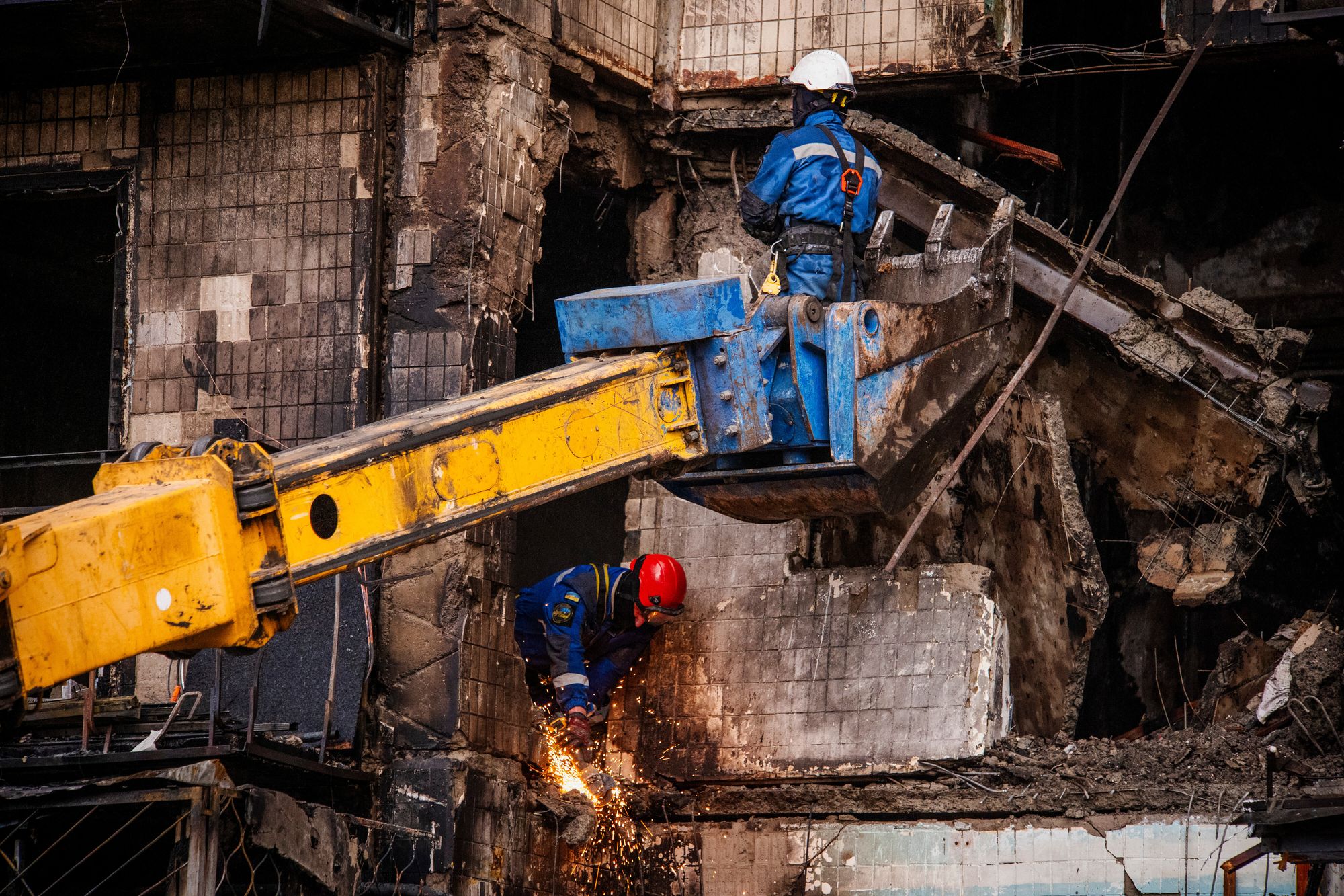 In pictures: Firefighters work at a destroyed apartment building after a Russian drone attack in Kyiv,