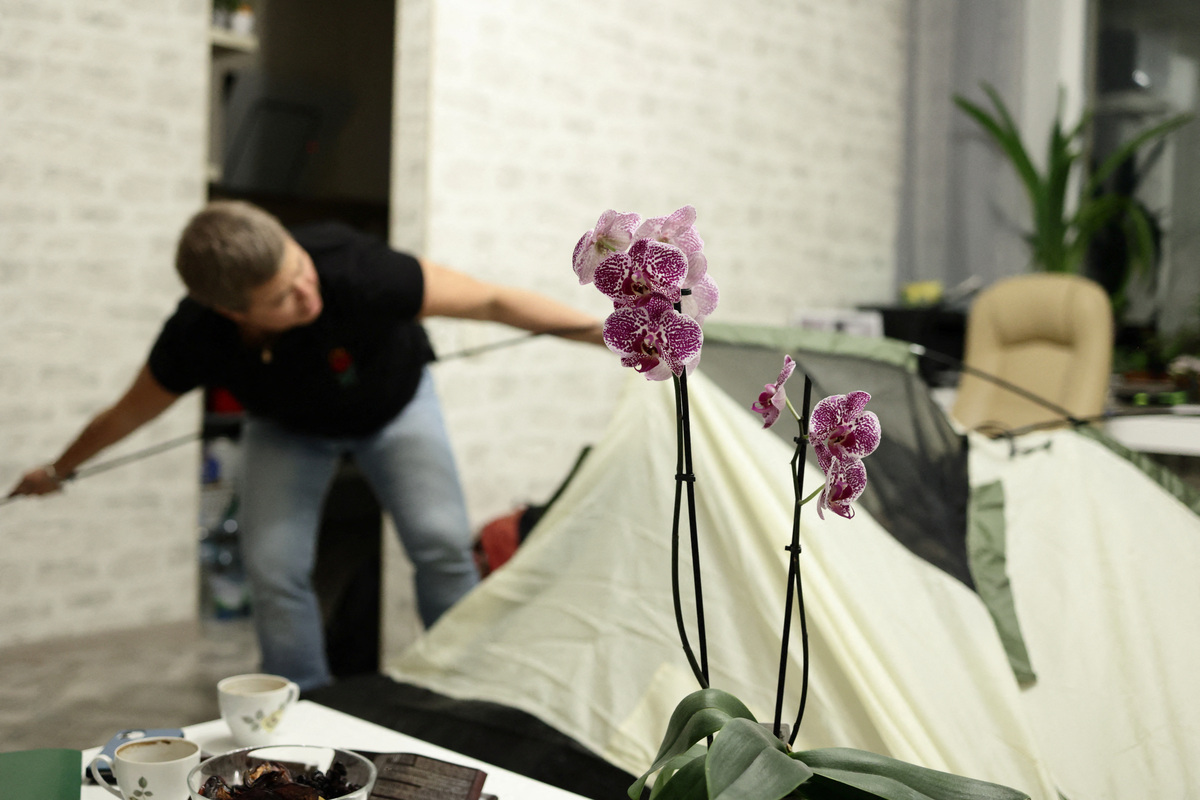 "I never intended to use a camping tent in Kyiv," she told Reuters from inside her living room in the Ukrainian capital, laughing as she demonstrated how to set up the accessory.