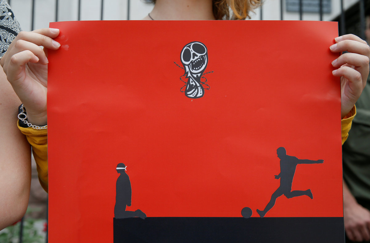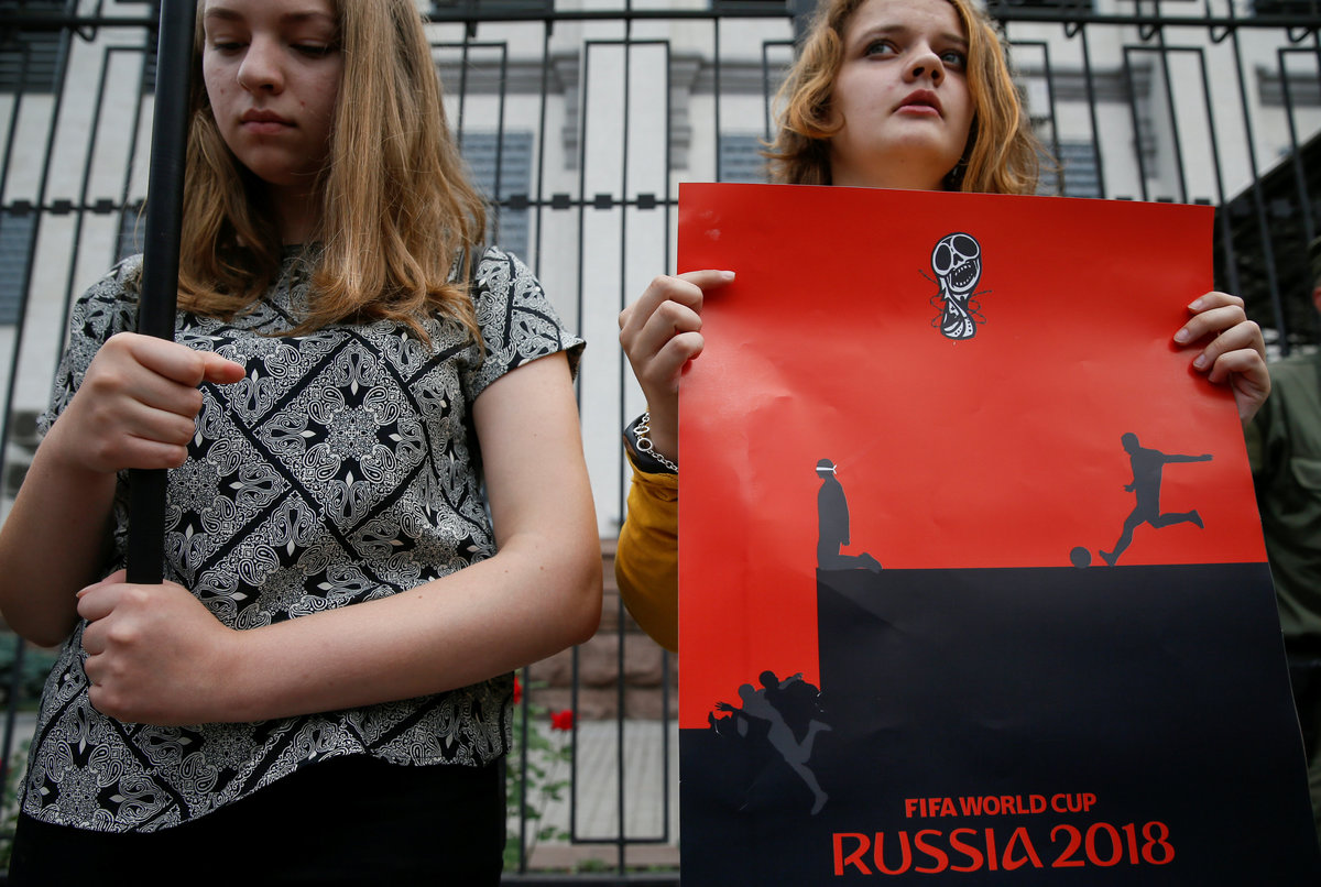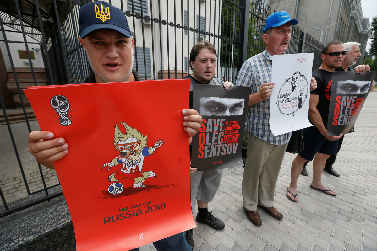 In Russia, jailed Ukrainian film director Oleg Sentsov is on hunger strike in an effort to highlight Russia's human rights record while the World Cup has attention focused on the country.