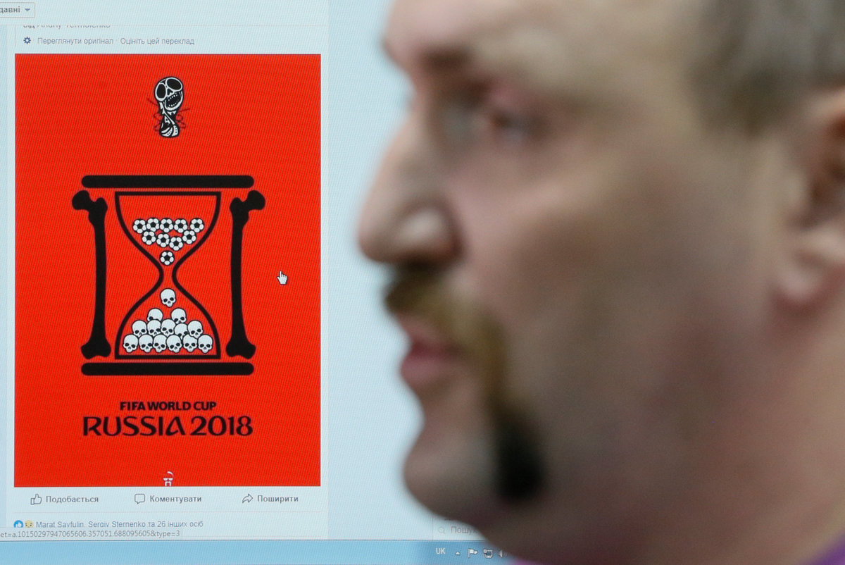 Andrii Yermolenko's black and red artwork and the hashtag BoycottWorldCup2018 have gone viral in Ukraine, whose relations with Moscow collapsed in 2014 over Russia's annexation of Crimea and its support for separatists in eastern Ukraine.