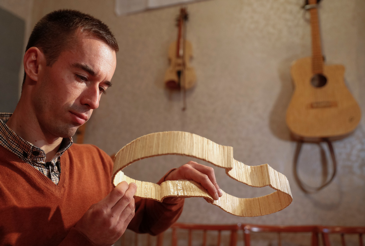 "(What I love) is to carve, to glue, to make it hold the shape, to take into account microns of a millimeter and to make it play in the end," Senchukov, 29, told Reuters as he worked on his second violin.