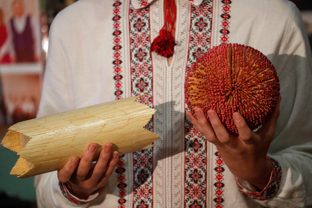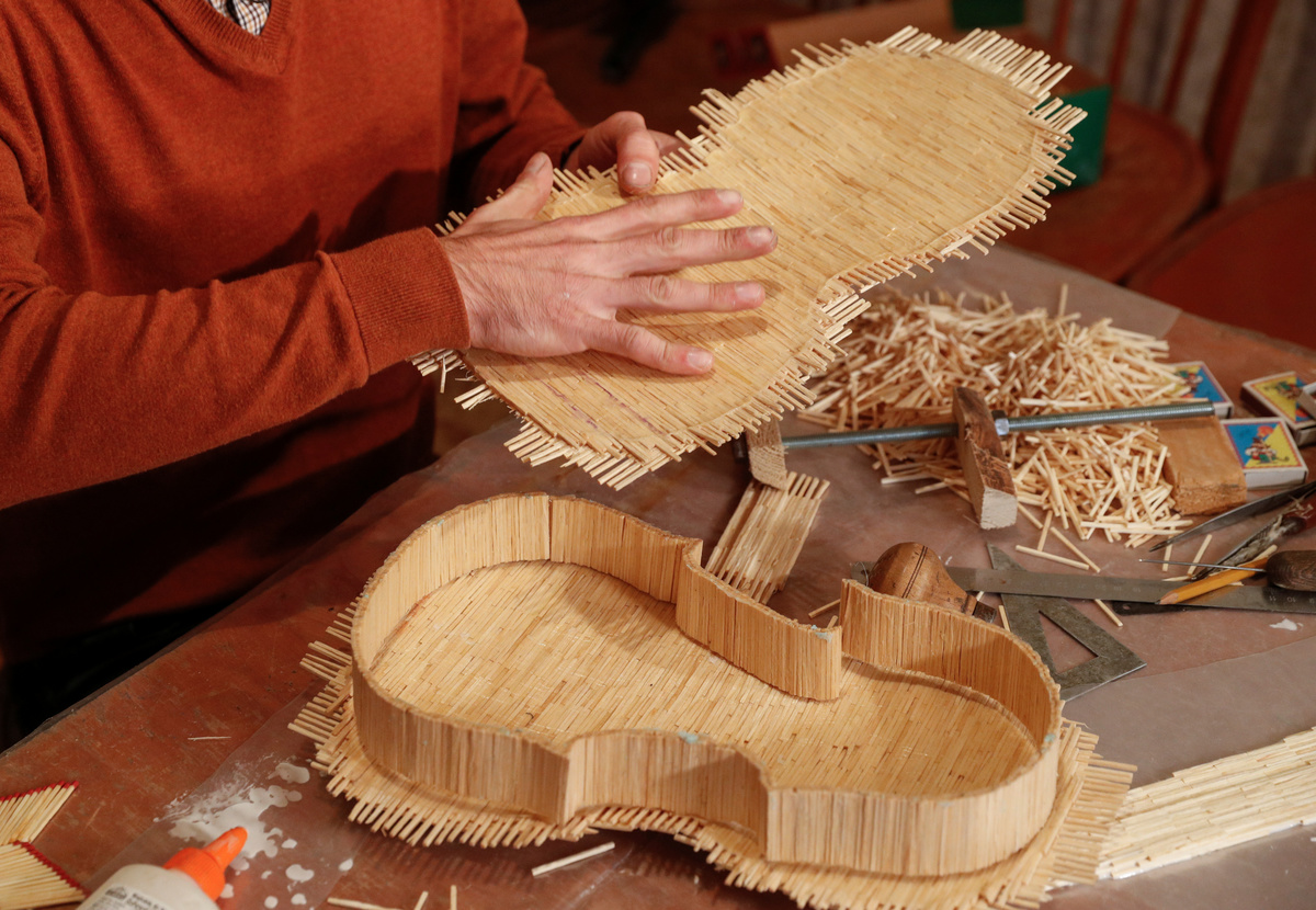 ZHASHKIV, Ukraine (Reuters) - Ukrainian Bogdan Senchukov wants to carve his way into the Guinness Records: by making the world's biggest collection of musical instruments from matchsticks.