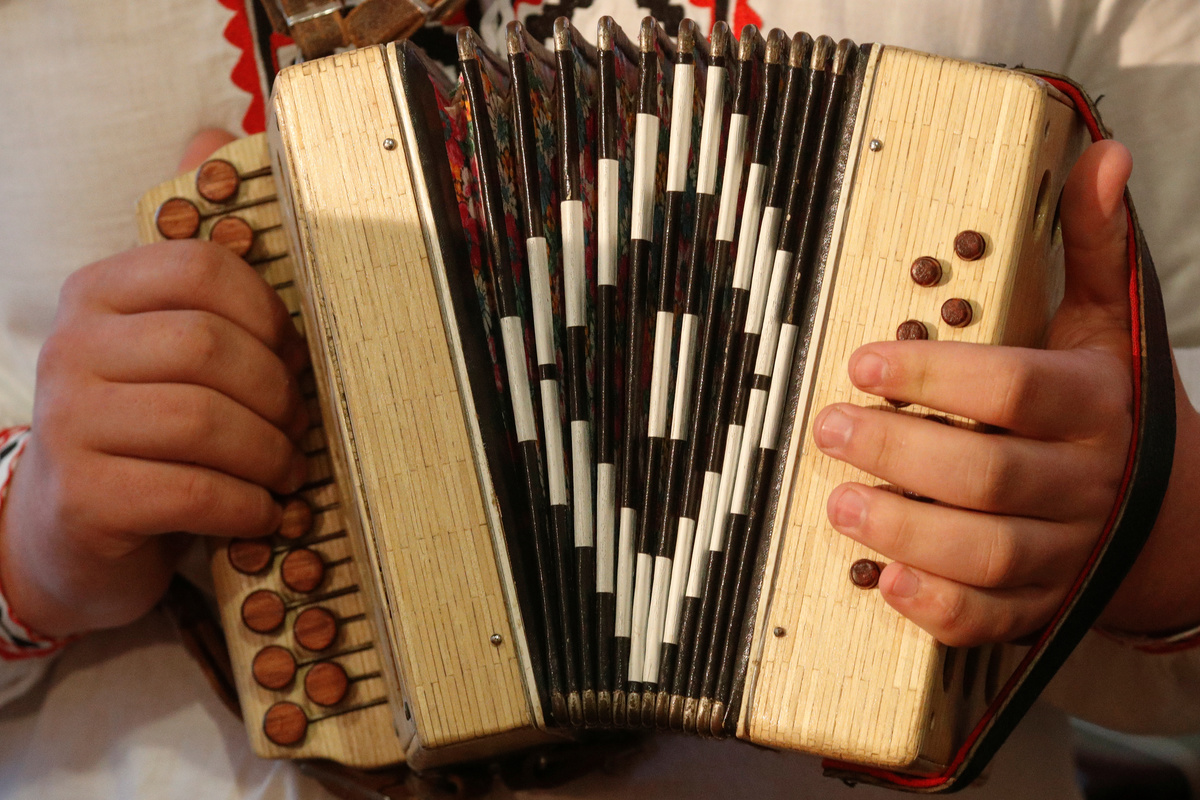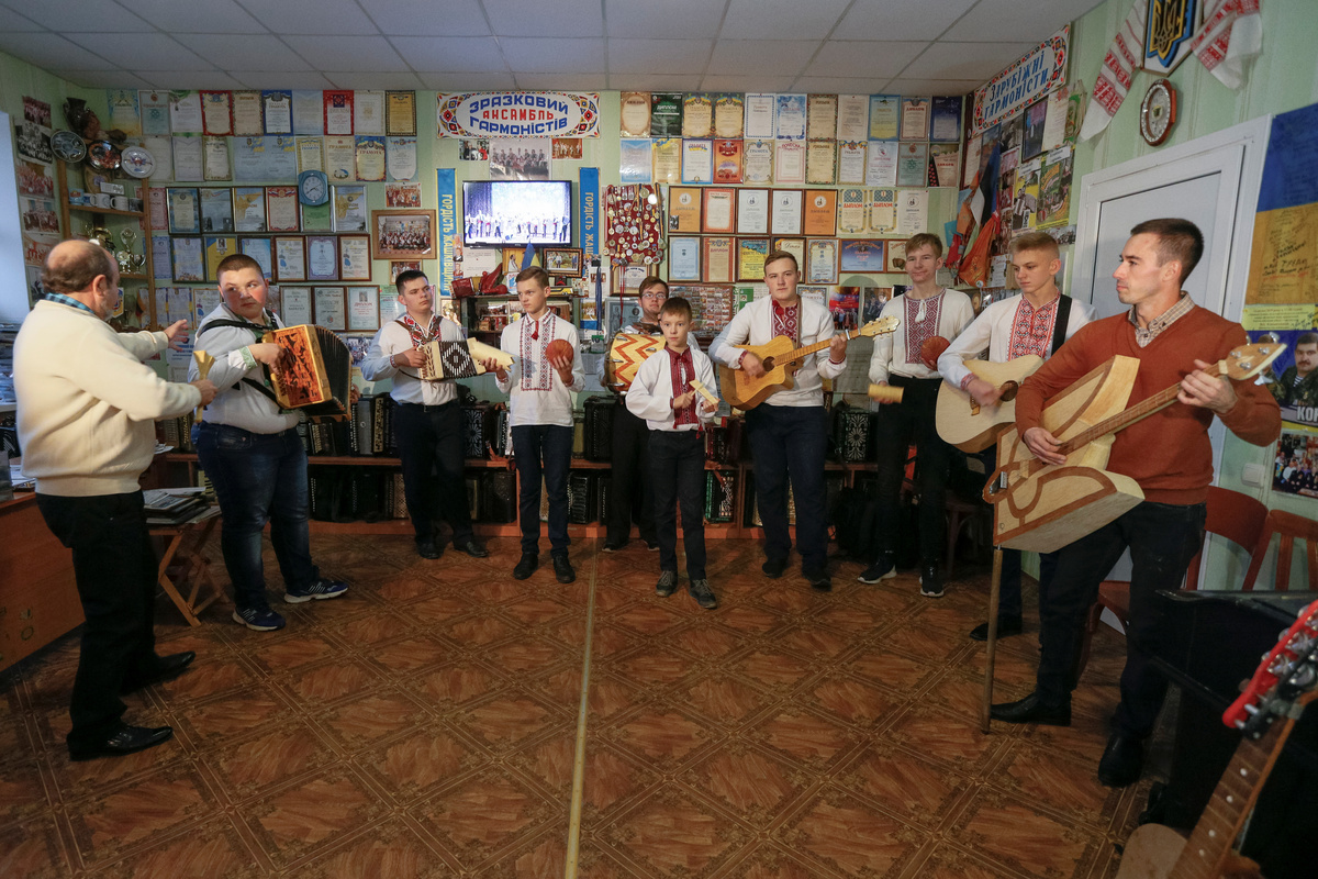 Already, 15 of his real-sized instruments, including two guitars, accordions, violin and drums, are played by a band of musicians which prides itself as the only "match music band" in Ukraine.