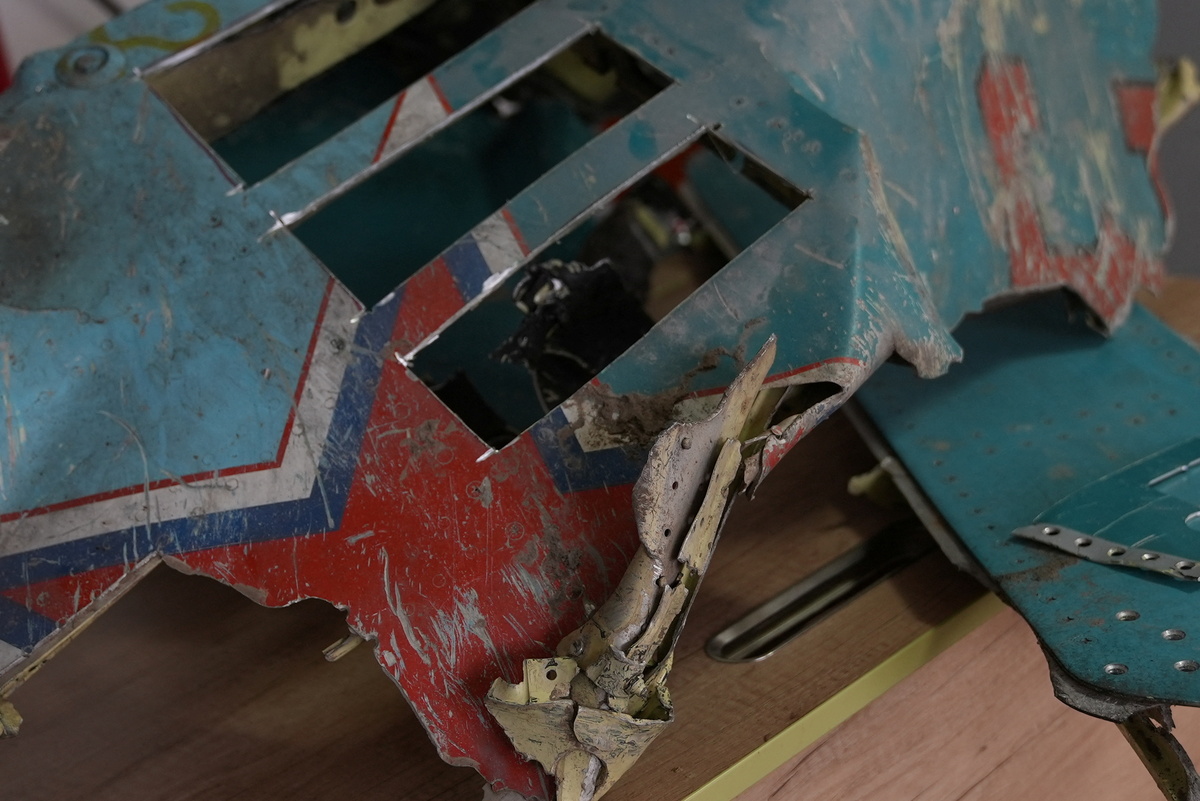Vysoven, who works in advertising, has oblong pieces about 10 cm (4 inches) long stamped out of fragments of fuselage, then machined, polished and printed with information about the plane and a "thank you" to the buyer. Each is perforated to receive a keyring, and engraved with a unique serial number.