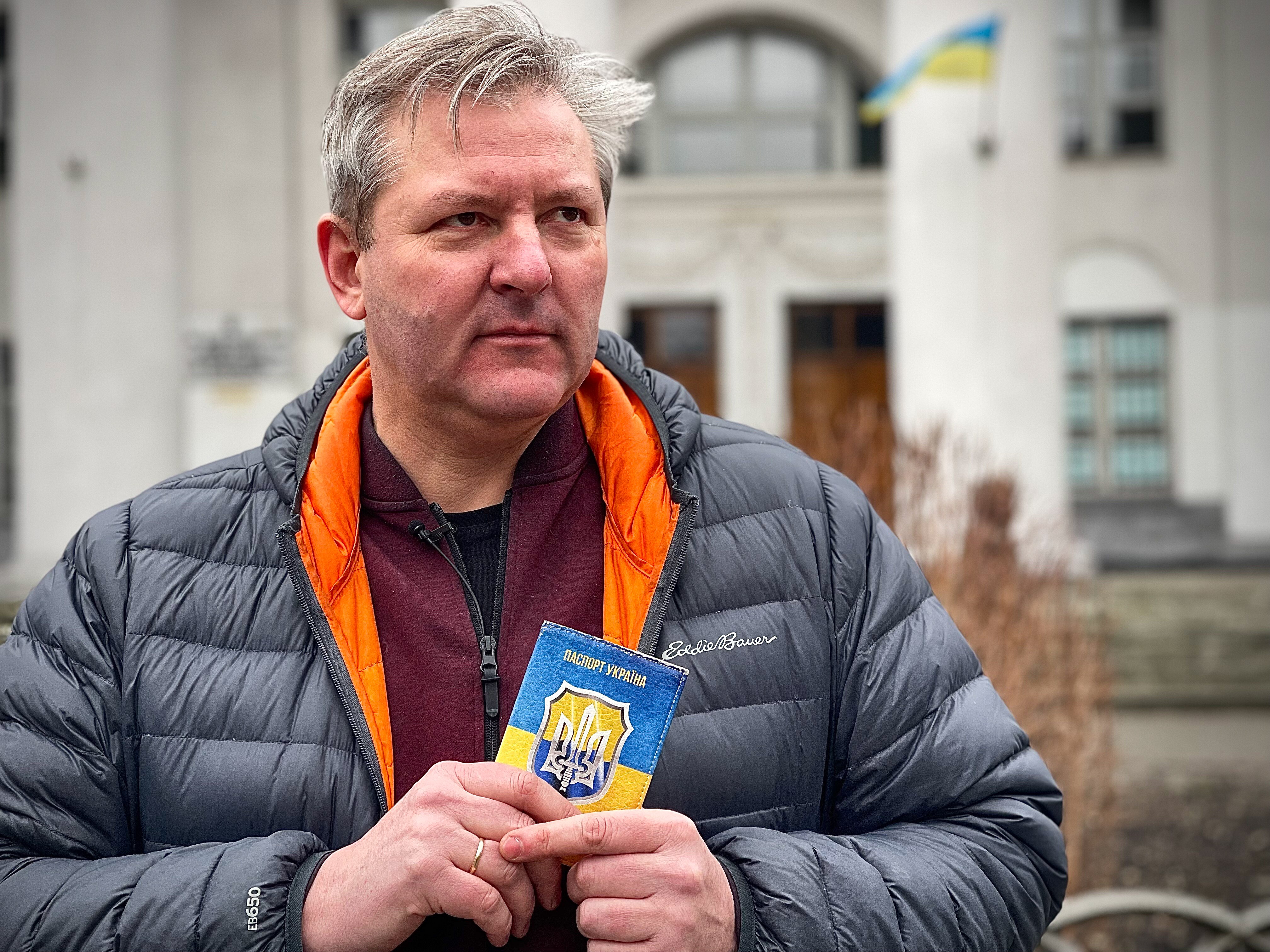"Of course I'm worried, for my sons, my wife, my whole country," he told the ABC on February 23 outside the Territorial Defence Office.