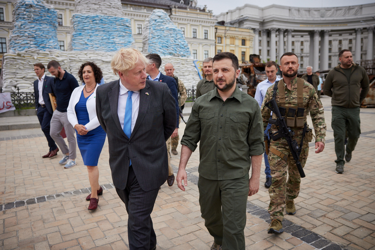 Despite losing domestic popularity and eventually having been forced to announce his resignation after dozens of ministerial departures in early July, Johnson remains a cult figure in Kyiv for his vocal support of Ukraine as it fights off Russia's invasion.