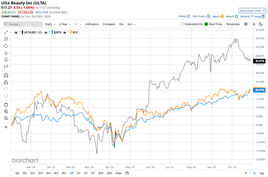 Shares of Ulta Beauty have surged 36.8% over the past 52 weeks, outpacing both the S&P 500 Index's ($SPX) 18.1% gain and the Consumer Discretionary Select Sector SPDR Fund's (XLY) 19.5% return over the period.