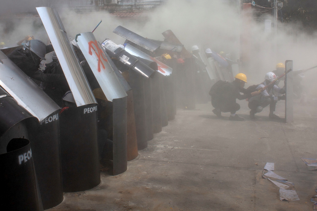 Sporadic protests were staged across Myanmar on Saturday and local media reported that police fired tear gas shells and stun grenades to break up a protest in the Sanchaung district of Yangon, the country's biggest city. There were no reports of casualties.
