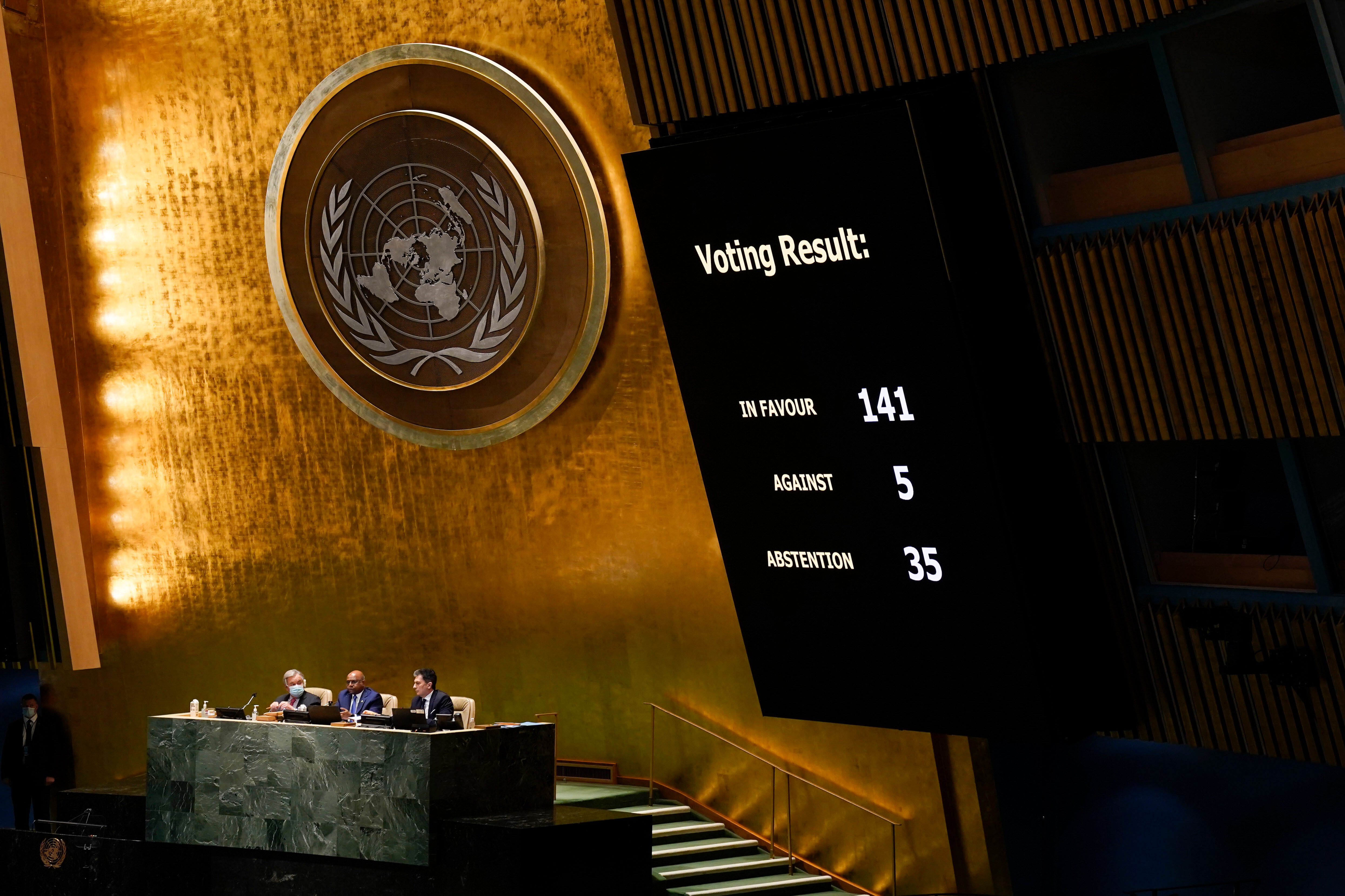 UN Secretary-General Antonio Guterres said the resolution sent a message "loud and clear" to Russia.