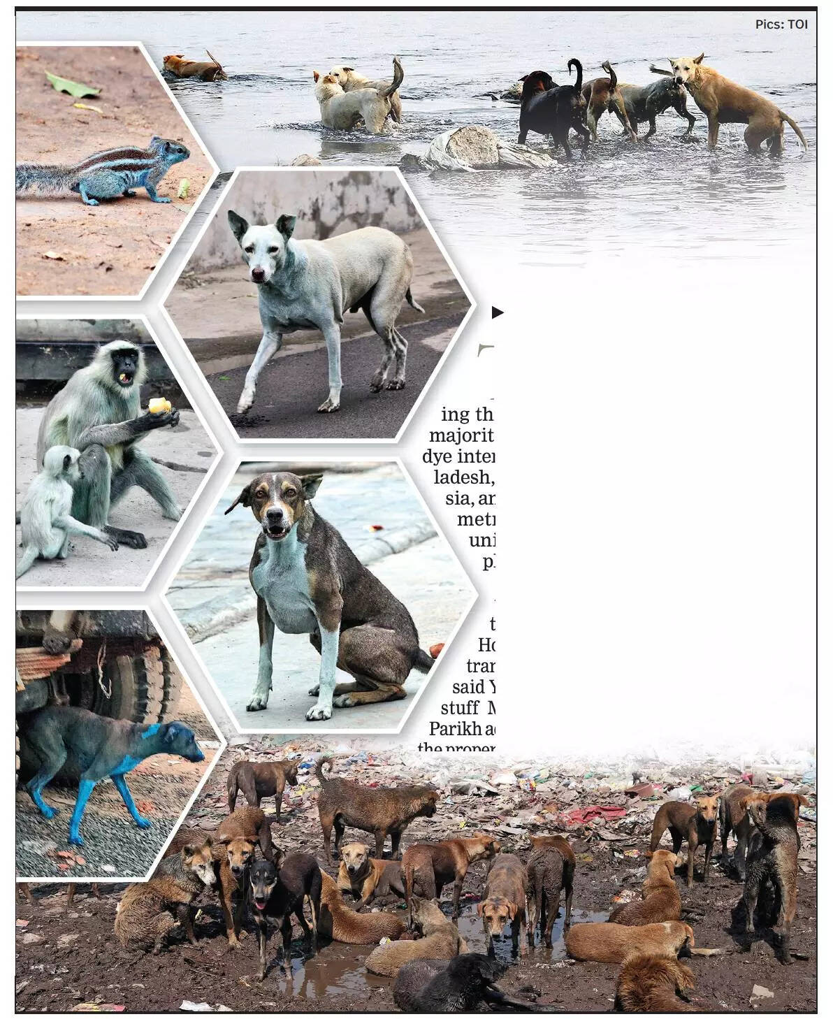 But in the Vatva patch, a Trump-orange cyclist and a blue dog are not the products of benign creative flourish but the result of red-hot occupational hazard at industrial units that manufacture chemicals, dyestuffs, and pigments. Monkeys and squirrels too have been painted abnormally after their brush with these units.
