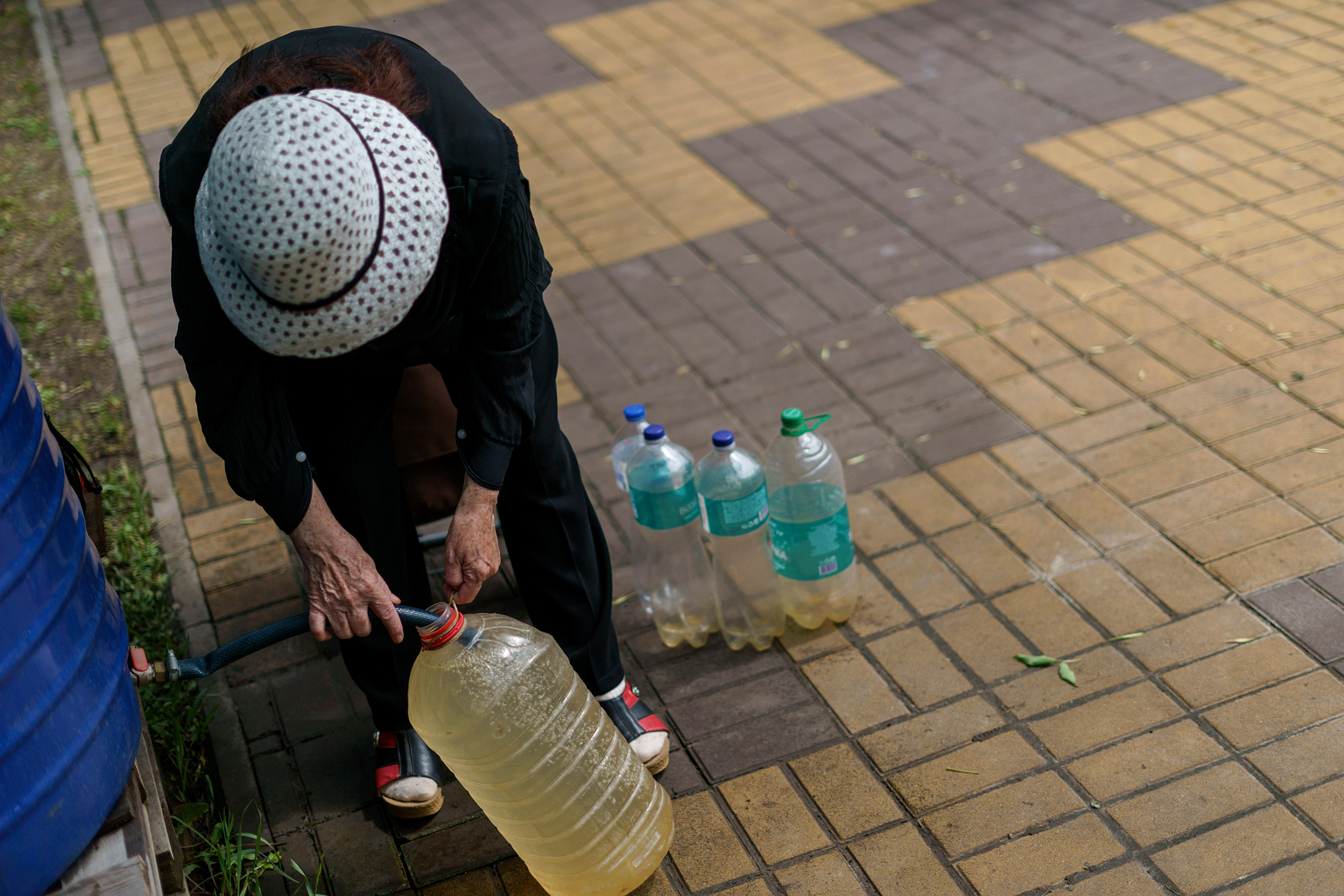 Eyewitness video showed a crowd gathered to collect water that had been transported from Odesa by a group of volunteers.