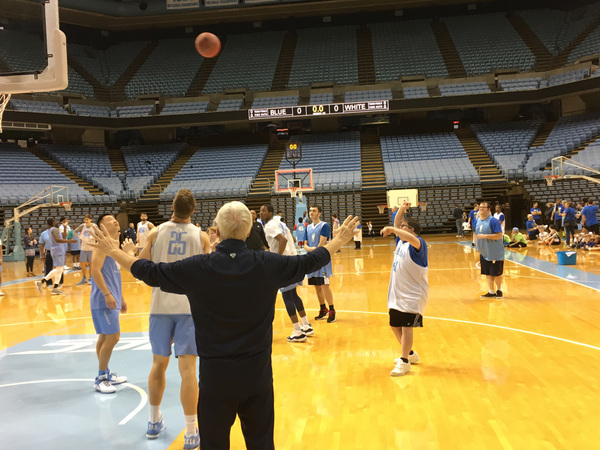 "Roy's Boys" dribbled, passed and shot jumpers, layups and floaters on the Smith Center court with N.C. Special Olympians for the 15th straight year Sunday.