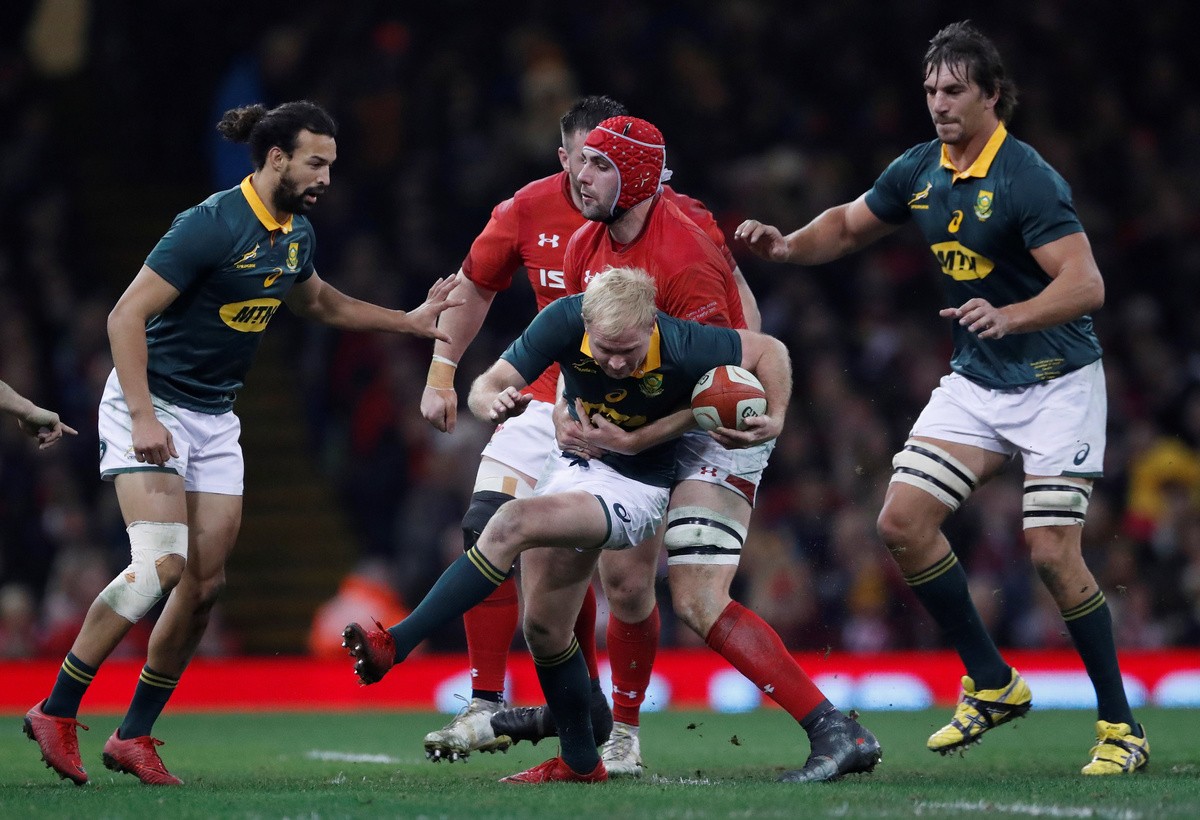 Team: 15-Willie le Roux, 14-Sbu Nkosi, 13-Jesse Kriel, 12-Damian de Allende, 11-Aphiwe Dyantyi, 10-Handre Pollard, 9-Embrose Papier, 8-Duane Vermeulen, 7-Pieter-Steph du Toit, 6-Siya Kolisi (captain), 5-Franco Mostert, 4-RG Snyman, 3-Frans Malherbe, 2-Malcolm Marx, 1-Steven Kitshoff