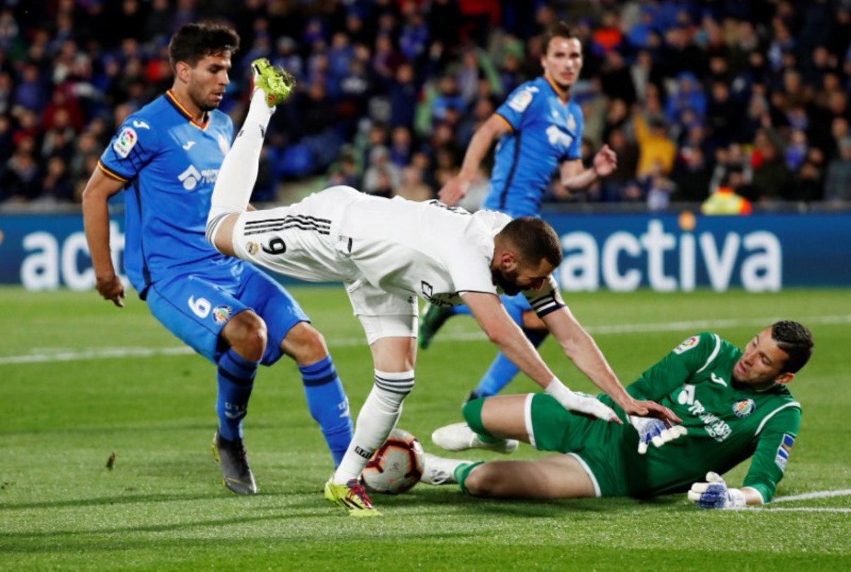 Soccer Football - La Liga Santander - Getafe v Real Madrid - Coliseum Alfonso Perez, Getafe, Spain - April 25, 2019 Real Madrid's Karim Benzema shoots at goal REUTERS/Sergio Perez