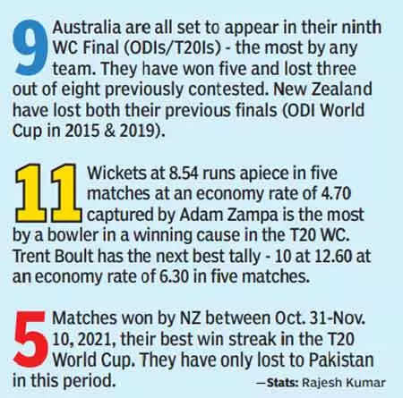 Both sides were not considered favourites in the lead-up to the tournament but their efficiency has seen them through. From David Warner’s bludgeoning bat to Neesham’s desperate lunge for sixes, from Ish Sodhi’s solid impact to Adam Zampa’s chart-topping variations, this will be a battle of two cold, clinical, well-organised teams who have added just the right blend of aggression and fearlessness.