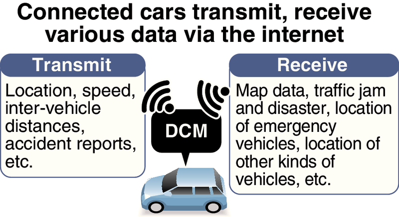 DCMs are key components of connected vehicles that are always connected to the internet. The devices collect data such as location, speed and information on vehicles' surroundings captured by cameras, and transmits them via the internet.
