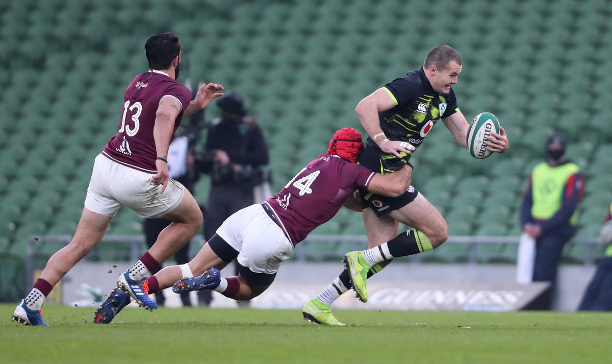The Georgian roars grew louder in the empty Aviva Stadium at each turnover and the world's 12th-ranked side's physical endeavours probably deserved more than just a second-period Tedo Abzhandadze penalty.