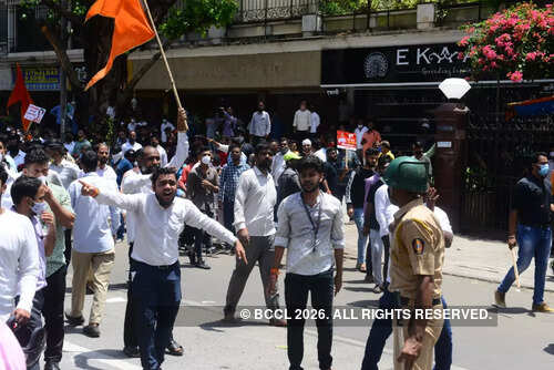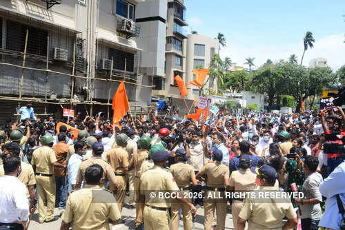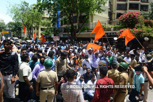 <p>In Mumbai, Shiv Sainiks gathered outside Rane's residence in Juhu and shouted slogans and raised placards against him. TOI photo: Sanjay Hadkar</p>BCCL7/10:'Slap CM Uddhav' remark: Narayan Rane faces arrest; Sena, BJP workers clash in Mumbai