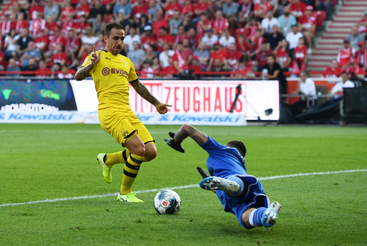 Marius Buelter gave the hosts a shock lead in the 22nd minute, but their joy was short-lived with Dortmund forward Paco Alcacer stabbing in an equaliser three minutes later to continue his run of scoring in every Dortmund game so far.