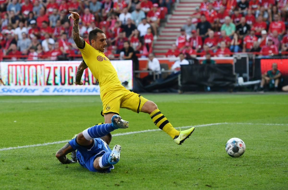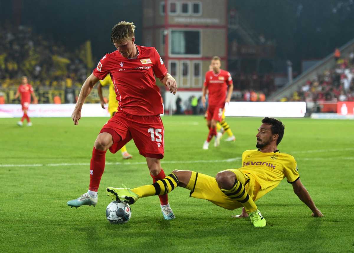 Soccer Football - Bundesliga - 1. FC Union Berlin v Borussia Dortmund - Stadion An der Alten Forsterei, Berlin, Germany - August 31, 2019 Borussia Dortmund's Paco Alcacer scores their first goal REUTERS/Annegret Hilse Soccer Football - Bundesliga - 1. FC Union Berlin v Borussia Dortmund - Stadion An der Alten Forsterei, Berlin, Germany - August 31, 2019 Borussia Dortmund's Paco Alcacer scores their first goal REUTERS/Annegret Hilse Soccer Football - Bundesliga - 1. FC Union Berlin v Borussia Dortmund - Stadion An der Alten Forsterei, Berlin, Germany - August 31, 2019 1. FC Union Berlin's Marius Bulter scores their second goal REUTERS/Annegret Hilse Soccer Football - Bundesliga - 1. FC Union Berlin v Borussia Dortmund - Stadion An der Alten Forsterei, Berlin, Germany - August 31, 2019 Borussia Dortmund's Mats Hummels in action with 1. FC Union Berlin's Marius Bulter REUTERS/Annegret Hilse Soccer Football - Bundesliga - 1. FC Union Berlin v Borussia Dortmund - Stadion An der Alten Forsterei, Berlin, Germany - August 31, 2019 1. FC Union Berlin's Neven Subotic with Borussia Dortmund's Jacob Bruun Larsen after the match REUTERS/Annegret Hilse