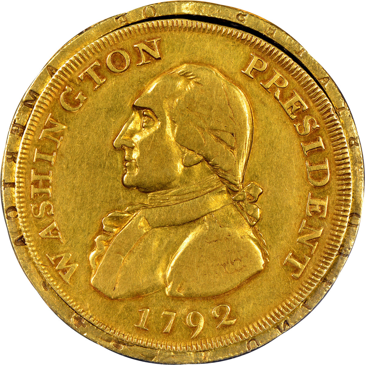 The 1792 Washington President gold eagle coin was never circulated as money, but is instead thought to have been presented to Washington when post Revolutionary War plans were being drawn up for the first U.S. Mint.
