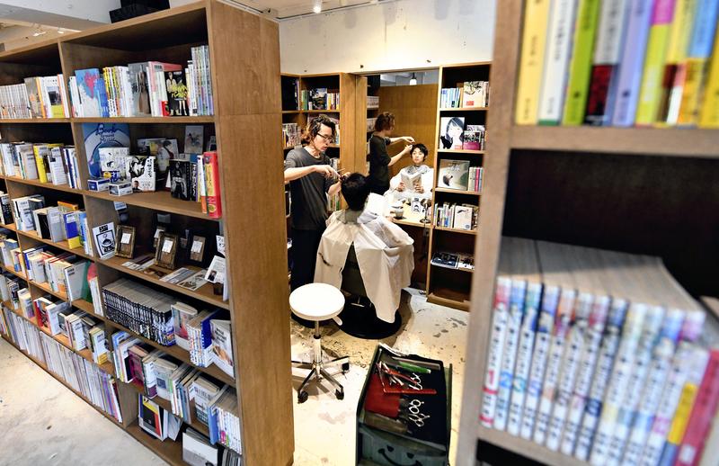 Owner-manager Yasutaka Namatame came up with the idea as he was preparing to become an independent business operator. He wanted to make the collection of about 2,000 books at his home into an appealing feature of his hair salon.