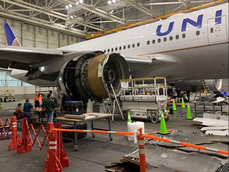 The US National Transportation Safety Board (NTSB) is assessing the aircraft in a hangar in Denver. Investigators have already released pictures of shattered fan blades.
