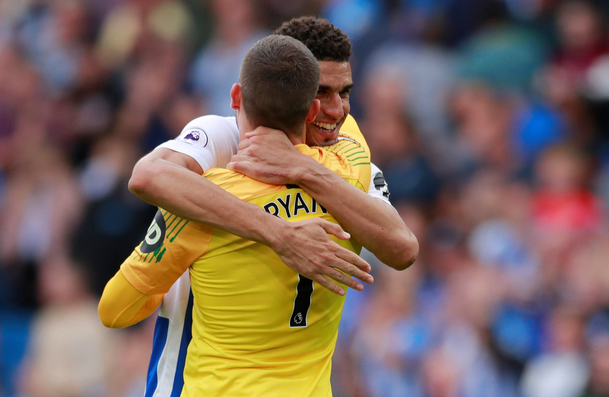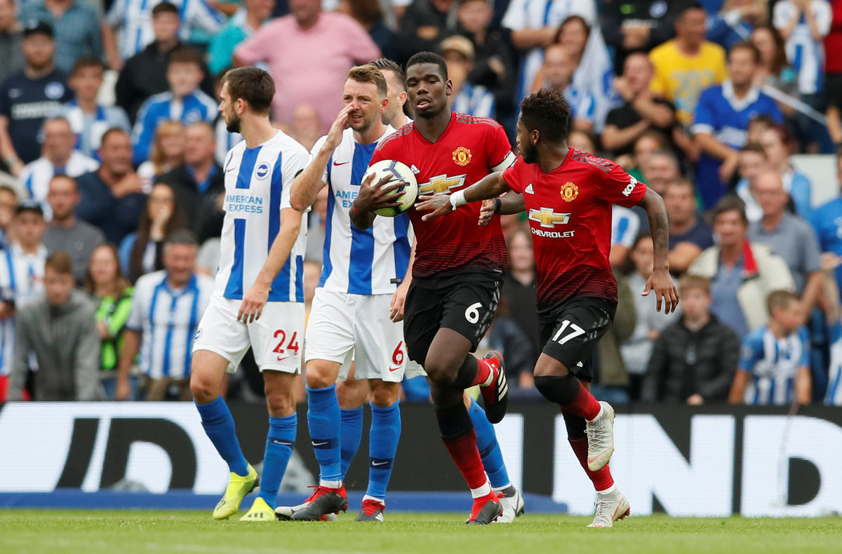 Glenn Murray and Shane Duffy scored twice in two minutes and, after Romelu Lukaku hit back, Bailly condeded a needless penalty which Pascal Gross converted via David de Gea's legs.