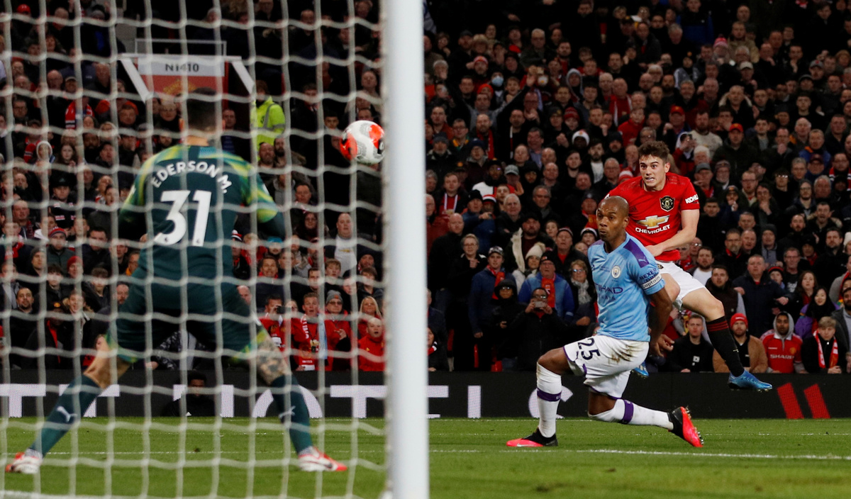 United's opening goal was straight off the training ground with Fernandes surprising City's defence with a sharply-taken chipped free-kick over the top to Martial whose volley sneaked under the arm of the diving Ederson.