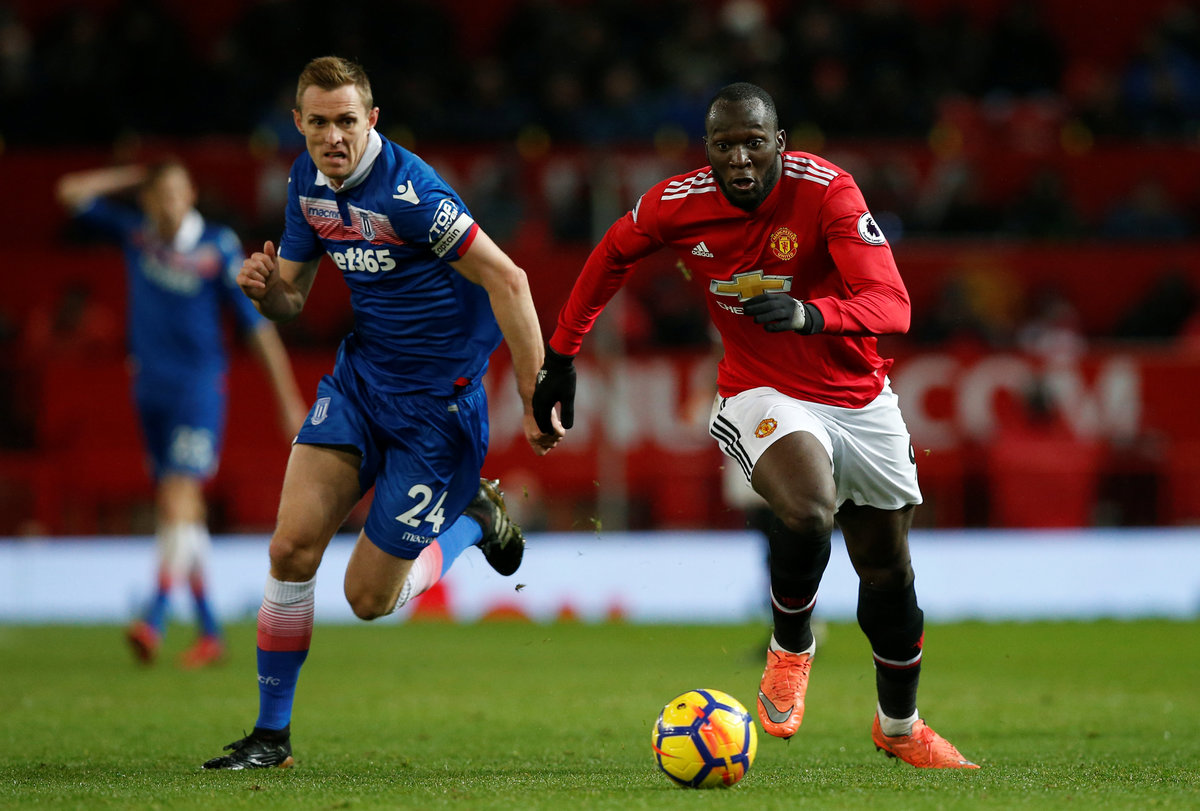 Soccer Football - Premier League - Manchester United vs Stoke City - Old Trafford, Manchester, Britain - January 15, 2018 Manchester United's Romelu Lukaku in action with Stoke City's Darren Fletcher REUTERS/Andrew Yates