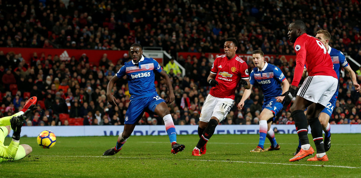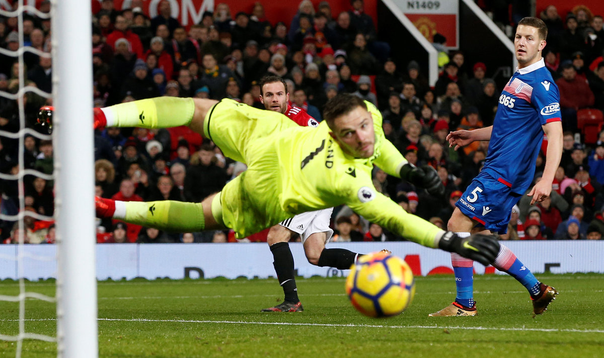 Soccer Football - Premier League - Manchester United vs Stoke City - Old Trafford, Manchester, Britain - January 15, 2018 Manchester United's Juan Mata scores a goal which is later disallowed Action Images via Reuters/Carl Recine Soccer Football - Premier League - Manchester United vs Stoke City - Old Trafford, Manchester, Britain - January 15, 2018 Manchester United's David De Gea celebrates after Romelu Lukaku scores their third goal Action Images via Reuters/Carl Recine Soccer Football - Premier League - Manchester United vs Stoke City - Old Trafford, Manchester, Britain - January 15, 2018 Stoke City's Xherdan Shaqiri shoots at goal REUTERS/Andrew YatesSoccer Football - Premier League - Manchester United vs Stoke City - Old Trafford, Manchester, Britain - January 15, 2018 Manchester United manager Jose Mourinho Action Images via Reuters/Carl Recine Soccer Football - Premier League - Manchester United vs Stoke City - Old Trafford, Manchester, Britain - January 15, 2018 Manchester United's Juan Mata shoots wide REUTERS/Andrew Yates Soccer Football - Premier League - Manchester United vs Stoke City - Old Trafford, Manchester, Britain - January 15, 2018 Manchester United's David De Gea Action Images via Reuters/Carl Recine Soccer Football - Premier League - Manchester United vs Stoke City - Old Trafford, Manchester, Britain - January 15, 2018 Manchester United's Romelu Lukaku celebrates scoring their third goal REUTERS/Andrew Yates