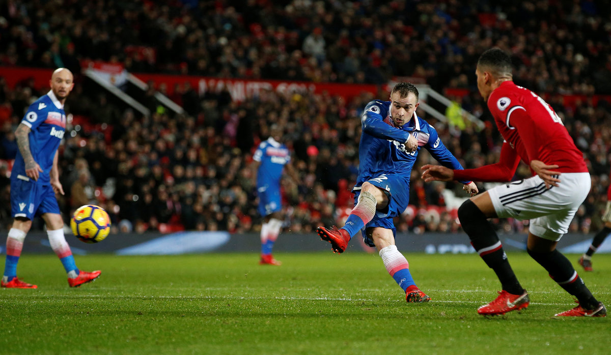 Stoke responded positively again, going in at halftime after Xherdan Shaqiri had tested keeper David De Gea with a low drive, but United got a firm grip on the game after the interval.