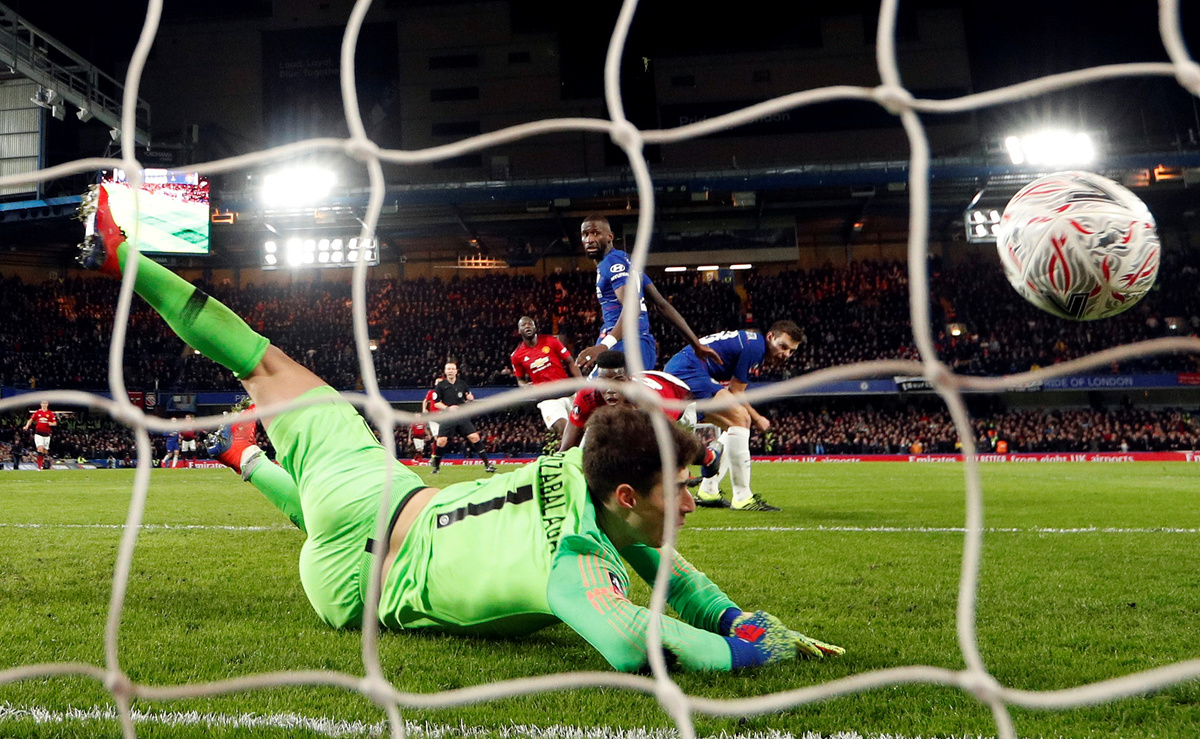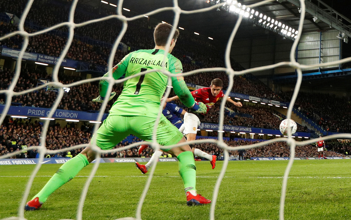 Three minutes later Arrizabalaga had to fly to his left to keep out a Herrera strike. The lively Rashford also kept the Chelsea keeper under constant pressure.