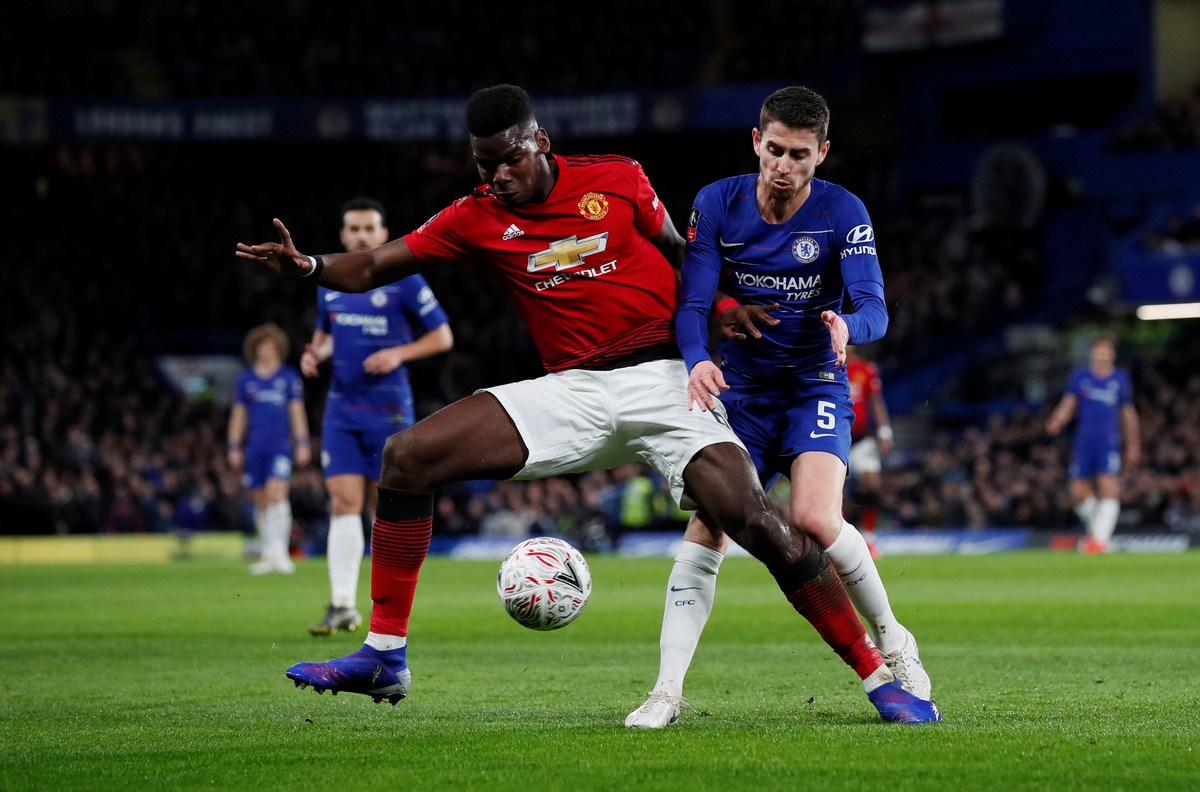 Chelsea's hopes were crushed just before halftime in a speedy United counter down the right, with Marcus Rashford crossing for Pogba to head powerfully home between defenders Cesar Azpilicueta and Antonio Rudiger.