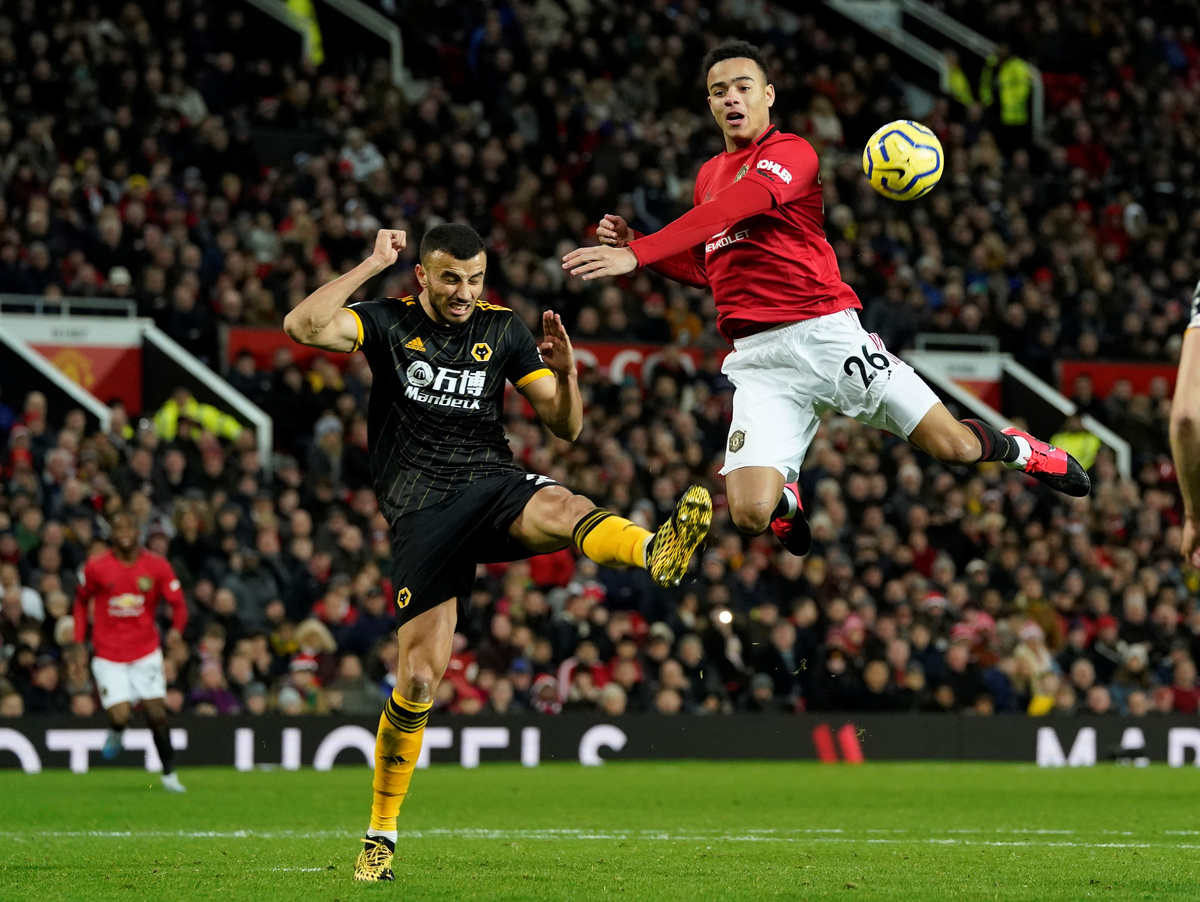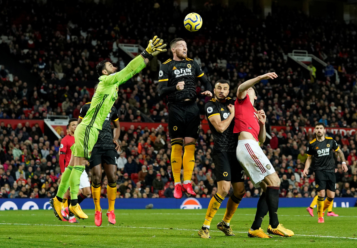 After Wolves striker Raul Jimenez tested David de Gea at the end of a swift counter attack, Romain Saiss then missed a great chance, heading wide from inside the box.