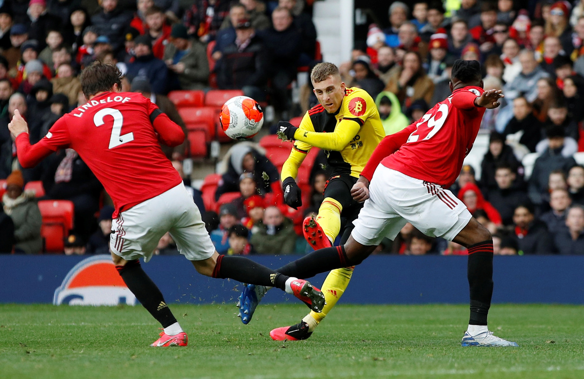 Watford had an effort ruled out for handball following a VAR check soon after halftime and United doubled their lead in the 58th minute when Martial picked up the rebound after Ben Foster blocked his initial attempt, left Etienne Capoue dumbfounded with dazzling footwork and dinked the ball over the keeper.