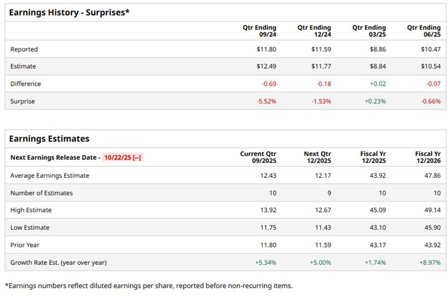 For fiscal 2025, analysts expect the company to report EPS of $43.92, up 1.7% from $43.17 in fiscal 2024. Looking ahead, its EPS is expected to grow 9% annually to $47.86 in fiscal 2026.