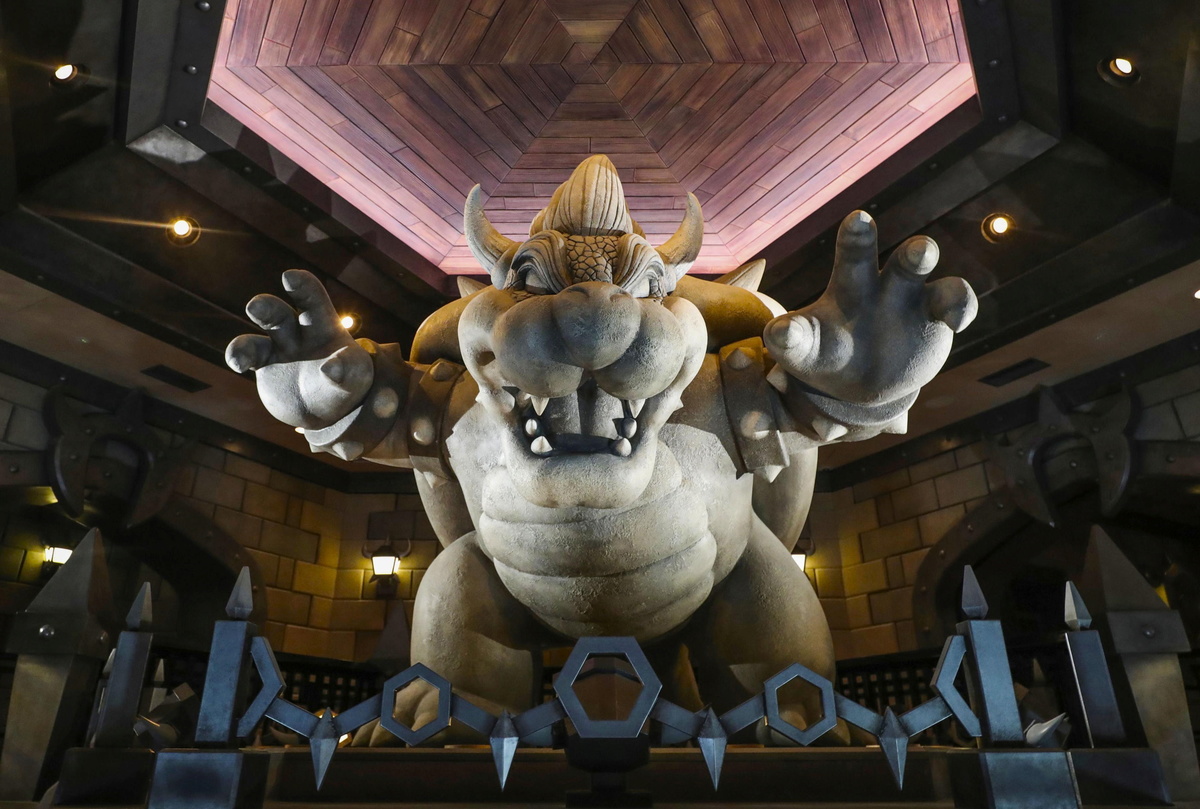 A statue of Bowser or King Koopa is displayed inside Bowser's Catsle at Super Nintendo World, a new attraction area featuring the popular video game character Mario where set to open in the spring of 2021, at the Universal Studios Japan theme park in Osaka, western Japan, November 30, 2020, in this photo taken by Kyodo. Mandatory credit Kyodo/via REUTERS