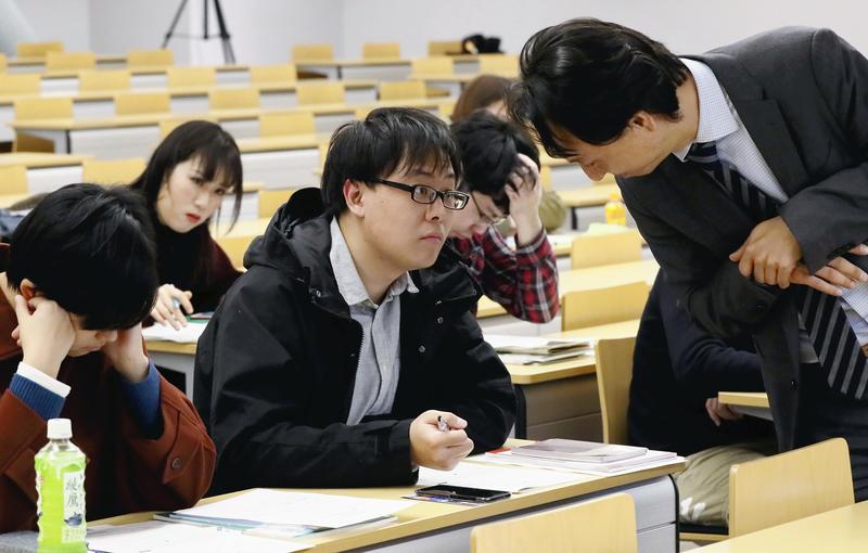This course, held in January at the university, was tailored for foreign students to teach them how to fill out job applications. About 20 participants were seen meticulously taking notes, while looking at job applications actually filled out by senior foreign students who had gained informal offers of employment from Japanese companies.